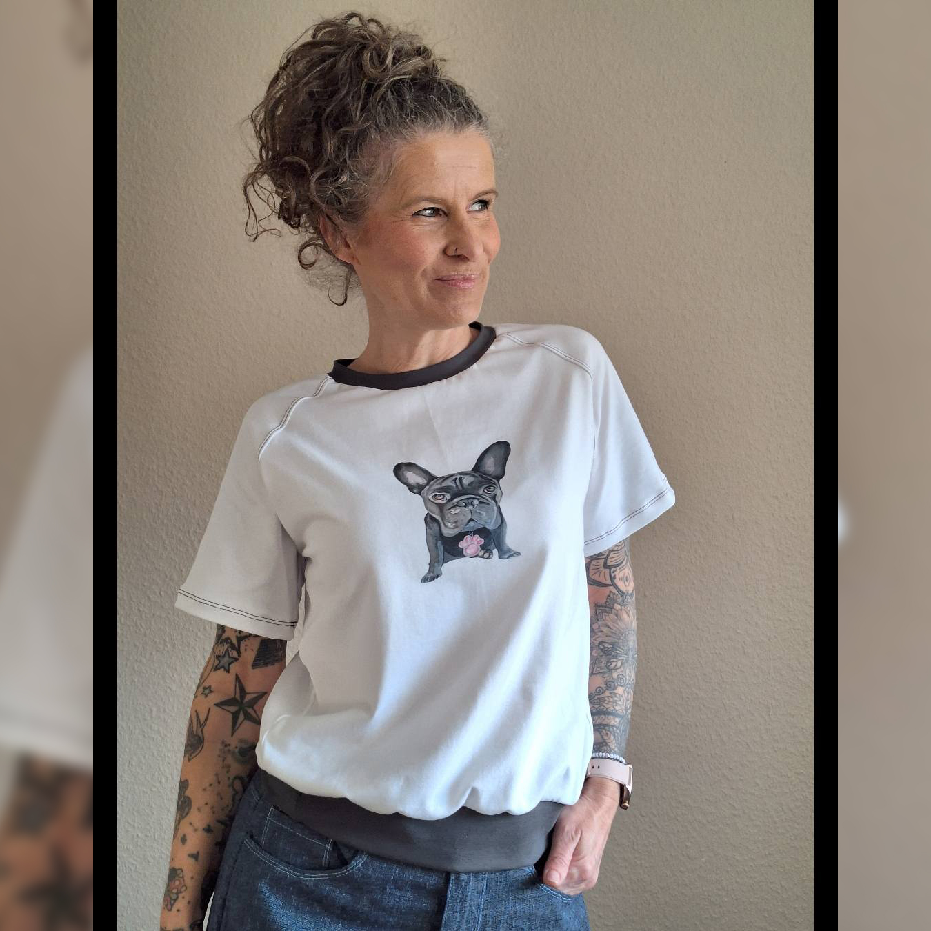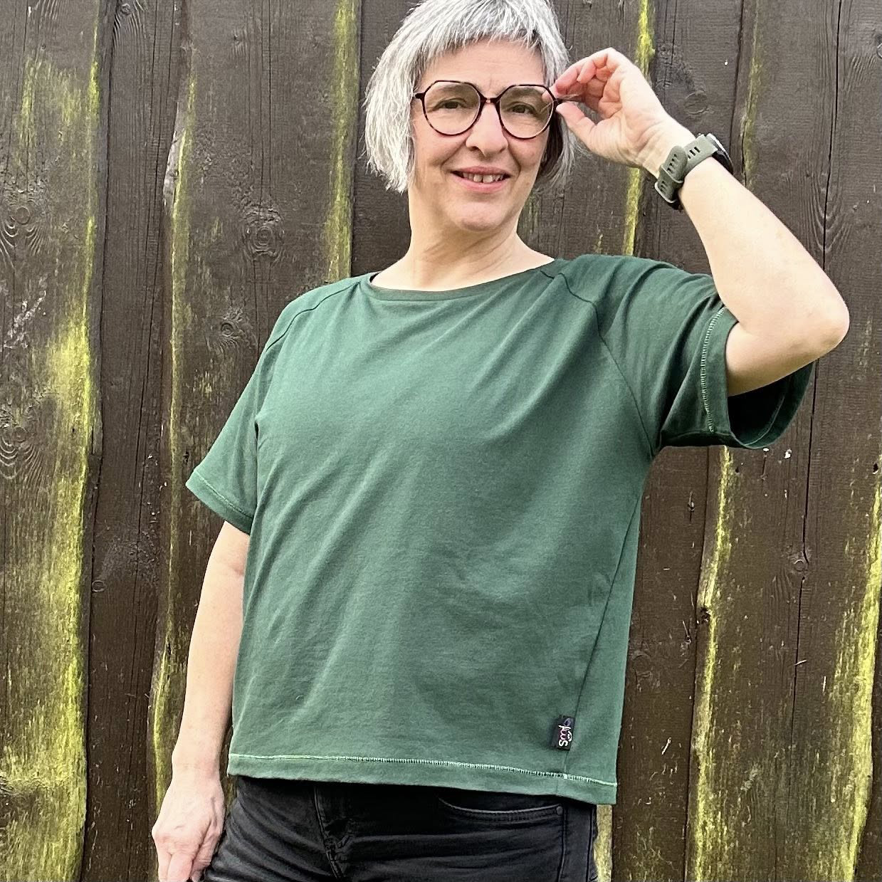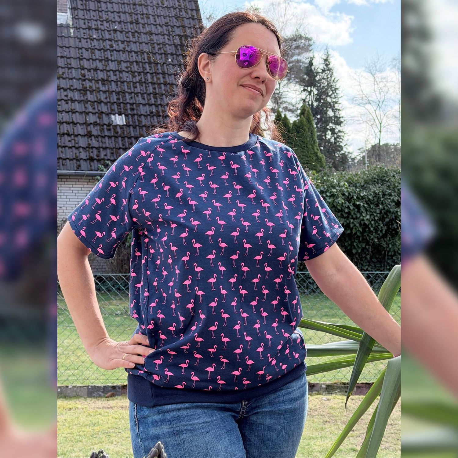 Raglanshirt ELORI – modernes Schnittmuster für Damen (Gr. 32–56). Vielseitiger Schnitt mit moderner Passform und raffinierten Details. Drei Längen für Körpergrößen von 1,58 m, 1,68 m und 1,78 m sorgen für optimalen Sitz. Die besondere Seitennaht verläuft ins Vorderteil und schafft einen modernen Look. Wählbar sind Saum oder Bündchen. Leger, nicht oversized. Ideal für elastische Stoffe wie Jersey oder French Terry – bequem und individuell nähbar.
