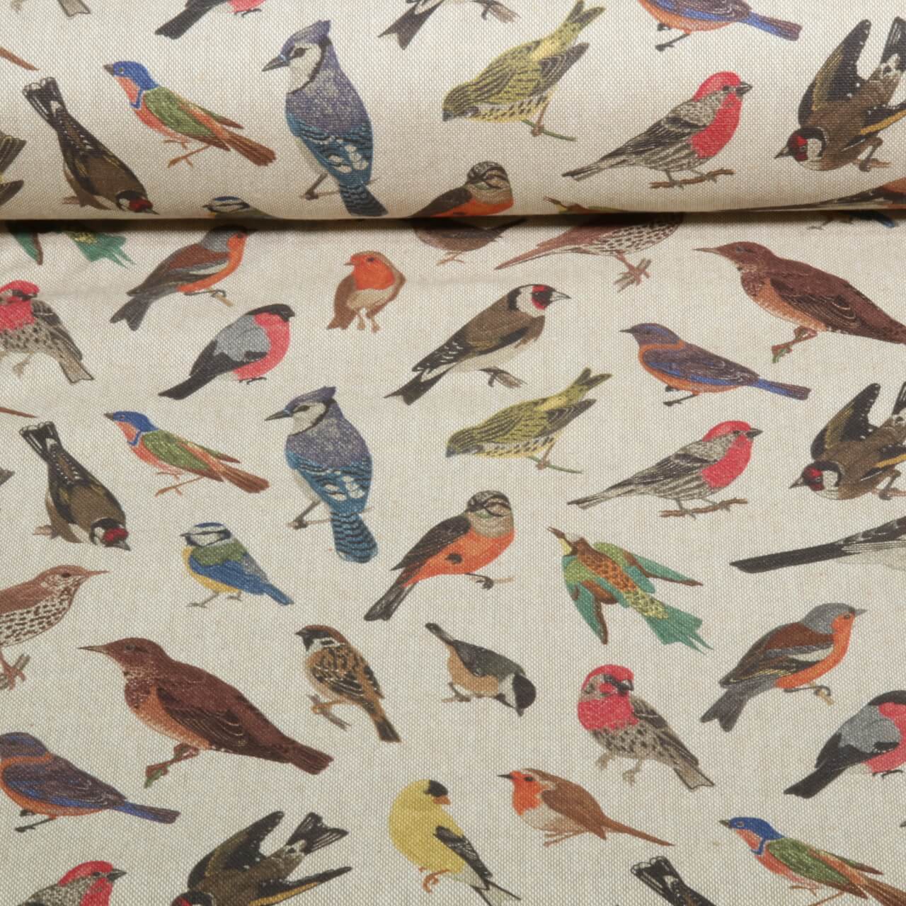 Canvas Recycelt - Digitaldruck Leinenlook Vögel Beige