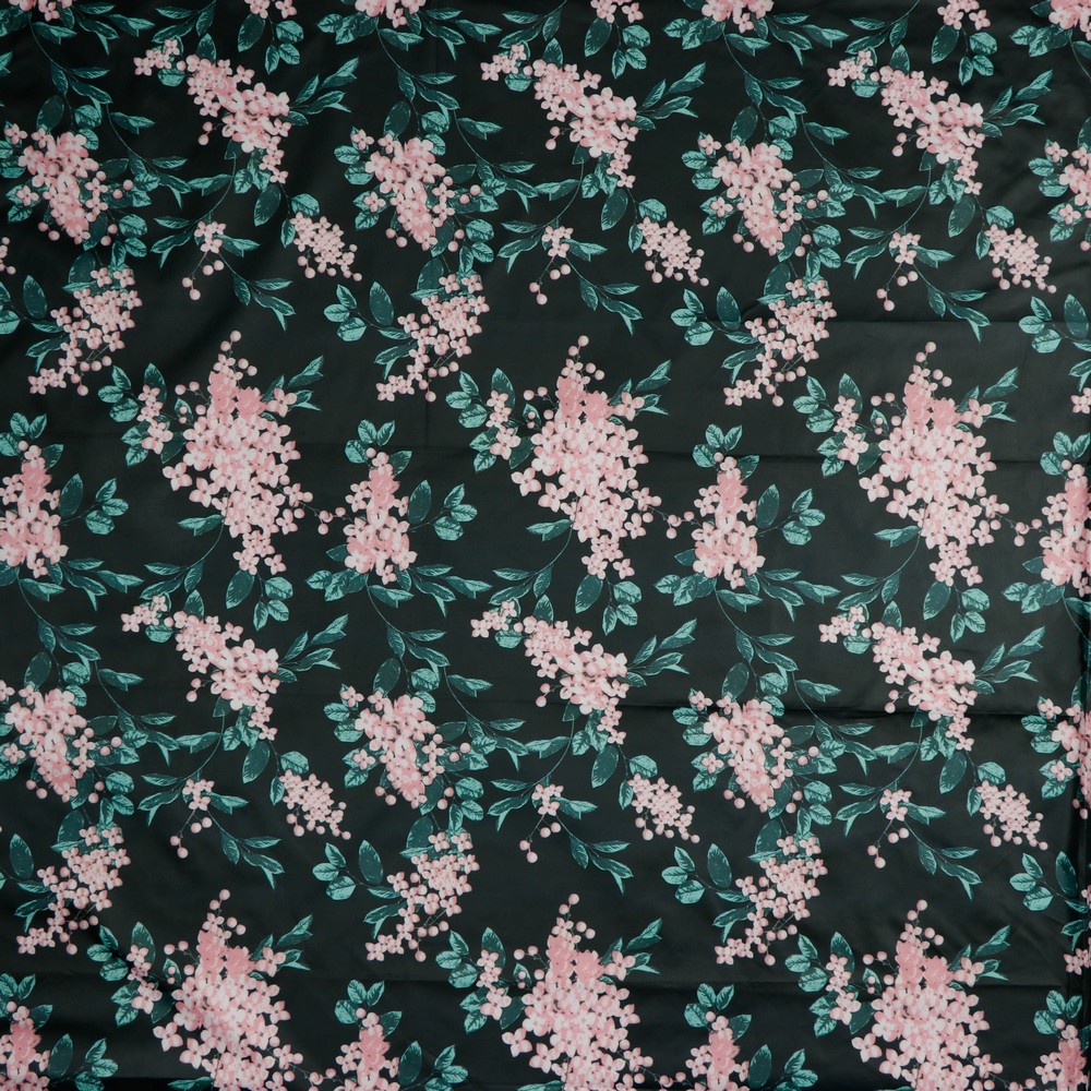 Regenjackenstoff Rosa Blütenzweige auf Schwarz Digital