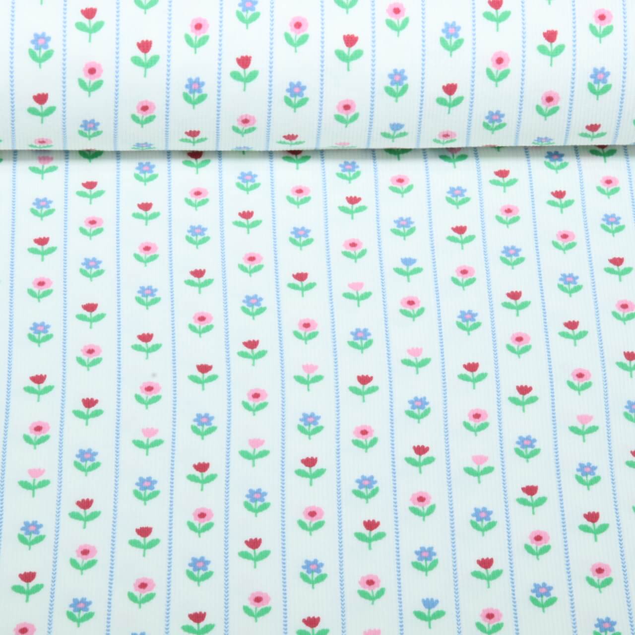Rippjersey - Blumen Weiß
