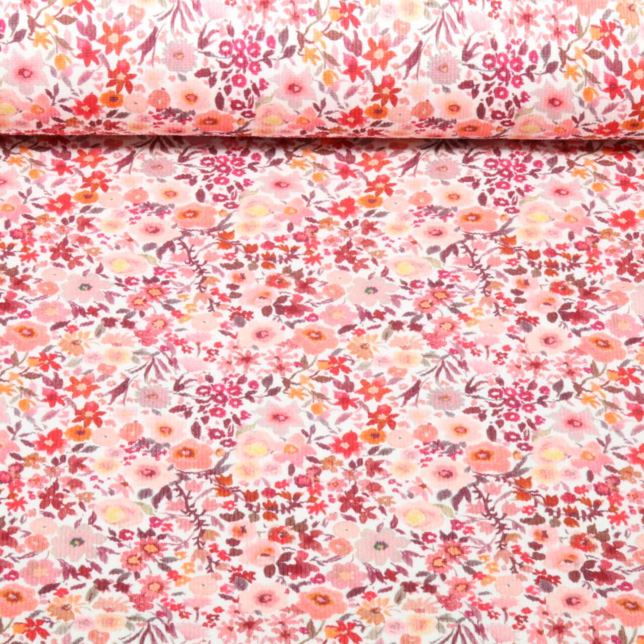 Rippjersey - Digital Kleine Blüten Rosa