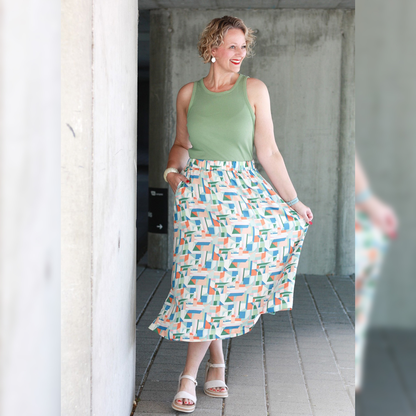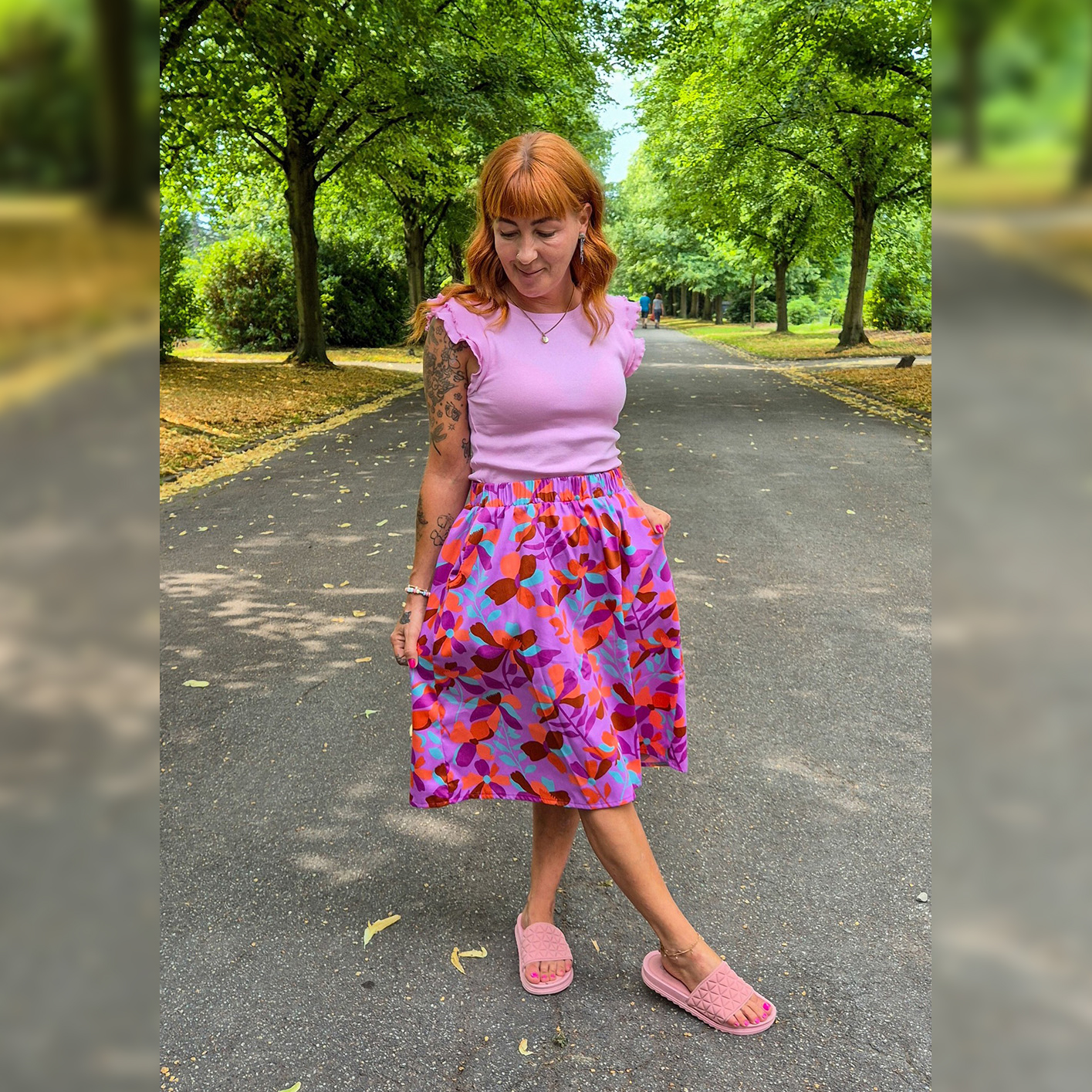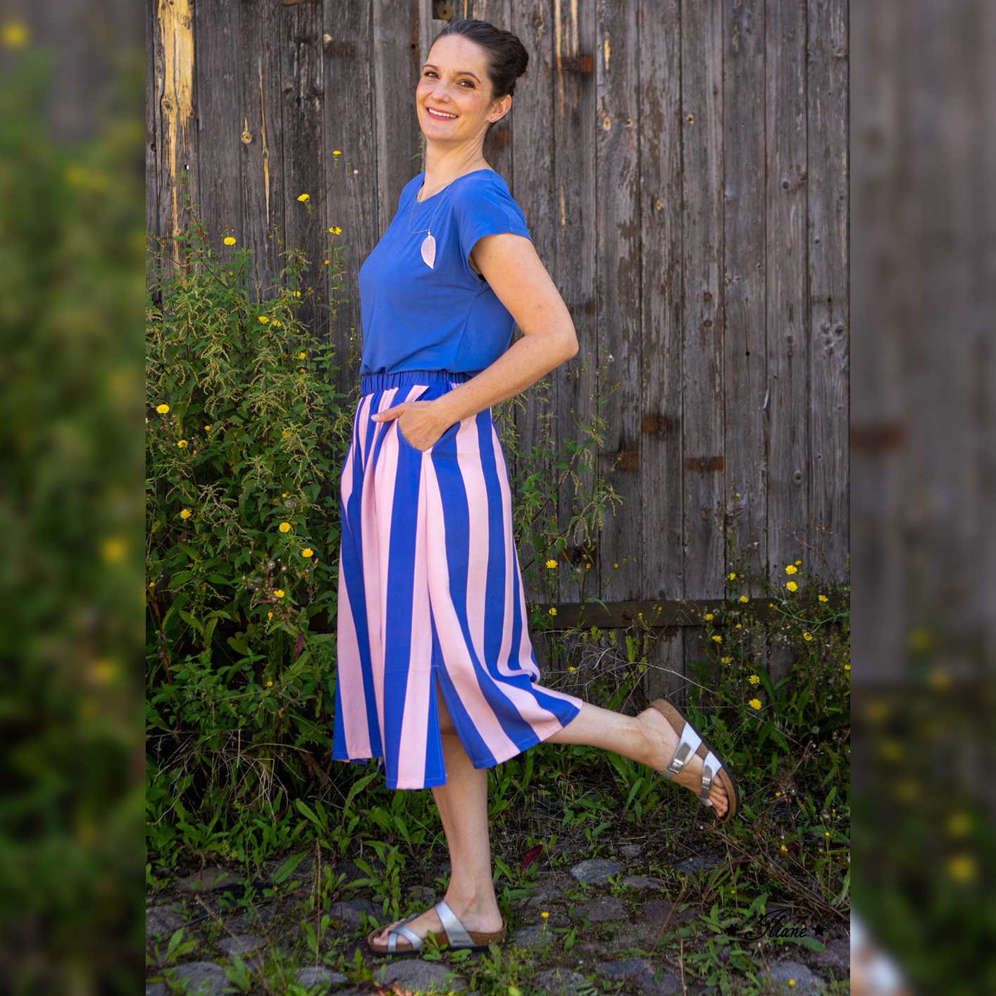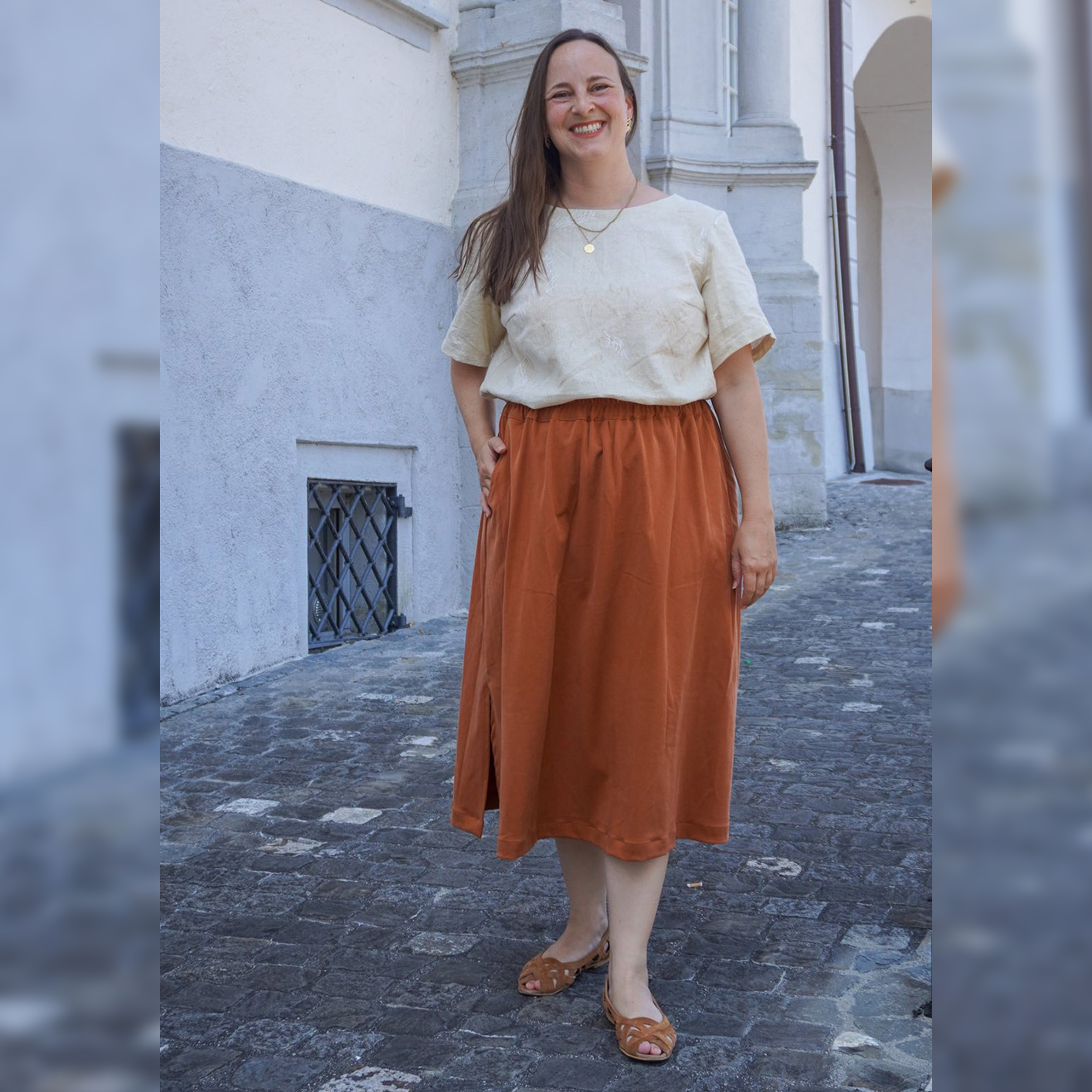 Du liebst Röcke, die easy zu nähen und trotzdem ein echter Hingucker sind? Dann ist Bine wie für dich gemacht! Ob kurz, midi oder wadenlang – du wählst aus vier Längen deinen Lieblingslook. Mit Gummibund, seitlichen Schlitzen und praktischen Taschen sitzt Bine super bequem und sieht dabei richtig schick aus.