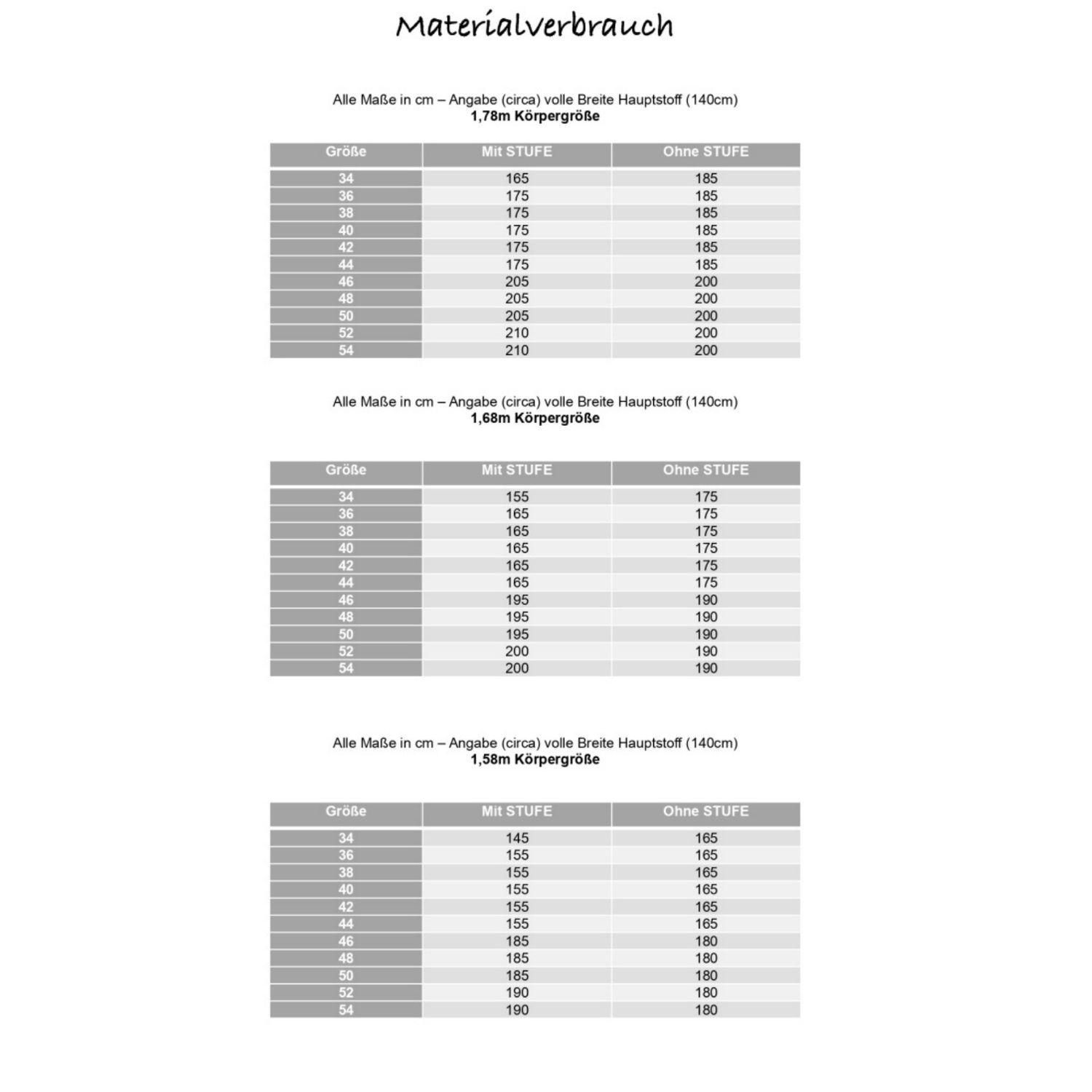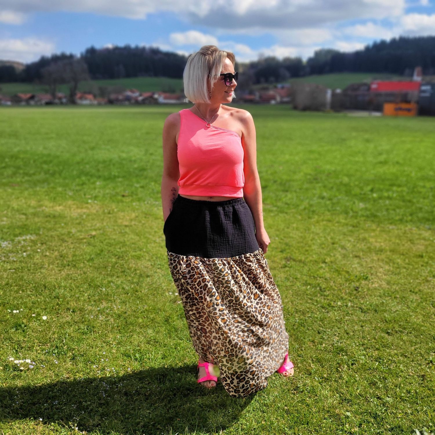 VALENTANO lässt sich wunderbar an unterschiedliche Stoffe und Anlässe anpassen. Besonders gut geeignet sind leichte bis mittelschwere Webwaren wie Leinen, Viskose, Musselin, Bubble-Crash oder Chiffon. So kannst du deinen Rock je nach Saison und Stilrichtung immer wieder neu erfinden – von luftig-leicht bis elegant fließend.