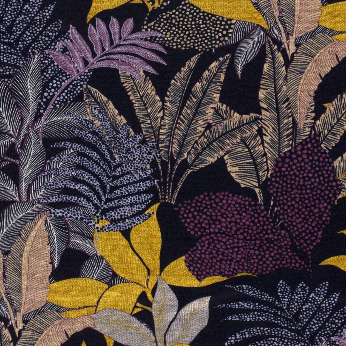 Romanit Jersey Bunte Palmenblätter Altrosa/Senfgelb auf Dunkelblau