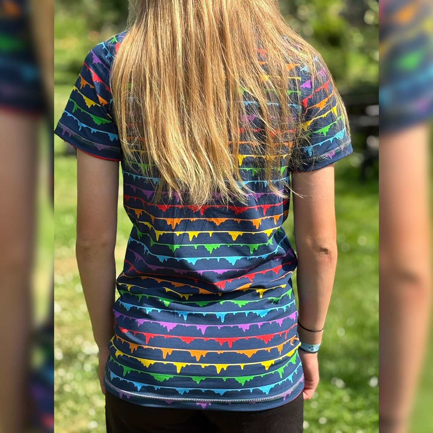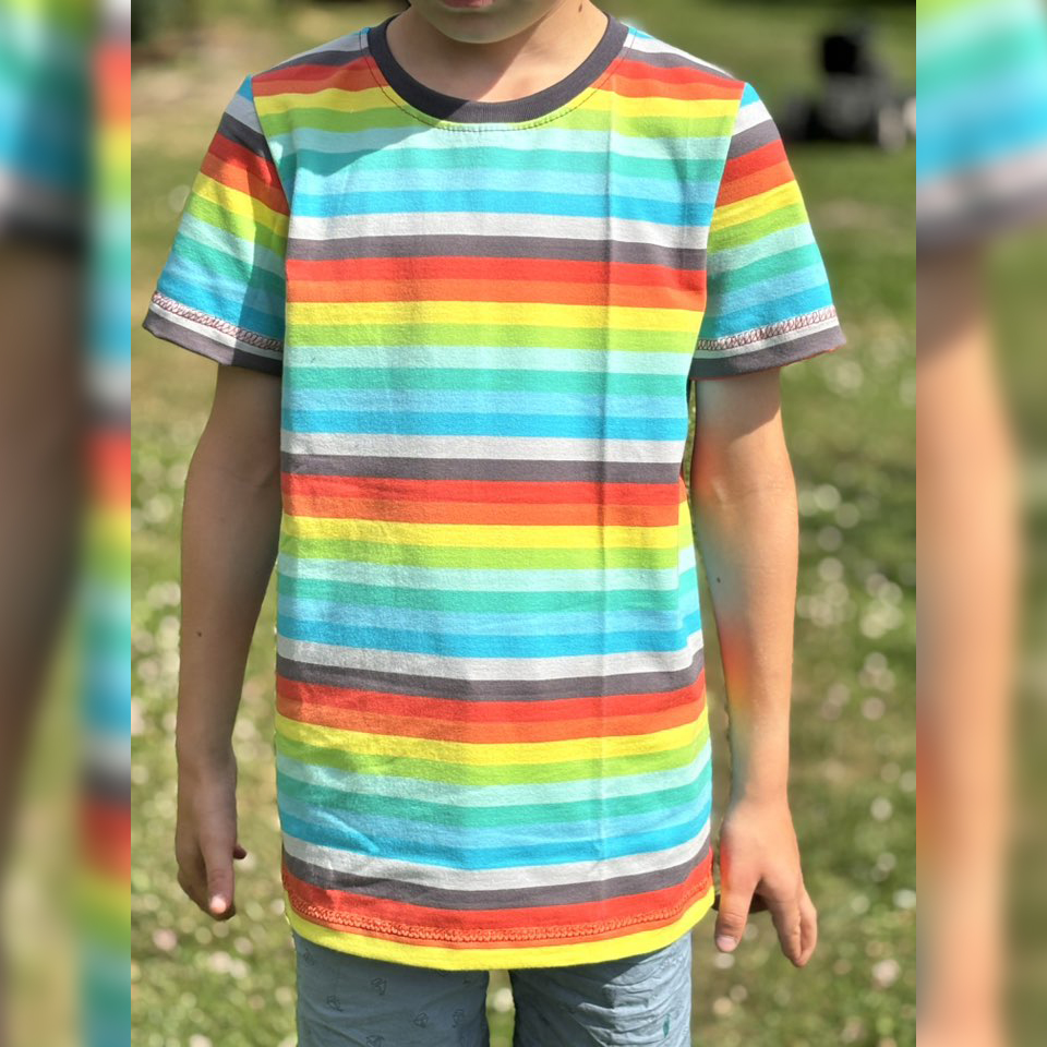 Das Schmale Shirt ist ein schmal geschnittener Unisex-Schnitt, der besonders für schmale Kinder oder zum Unterziehen geeignet ist. Ob lange oder kurze Ärmel: Nähe fix einen Stapel Basics für jeden Tag oder nutze den Schnitt als Leinwand für deine eigenen Design Ideen: Experimentiere mit Teilungen, Applikationen, Plotts, Aufnähern und verschiedenen Verarbeitungsoptionen wie Säumen oder Einfassungen. Ich bin gespannt, was du dir ausdenkst!