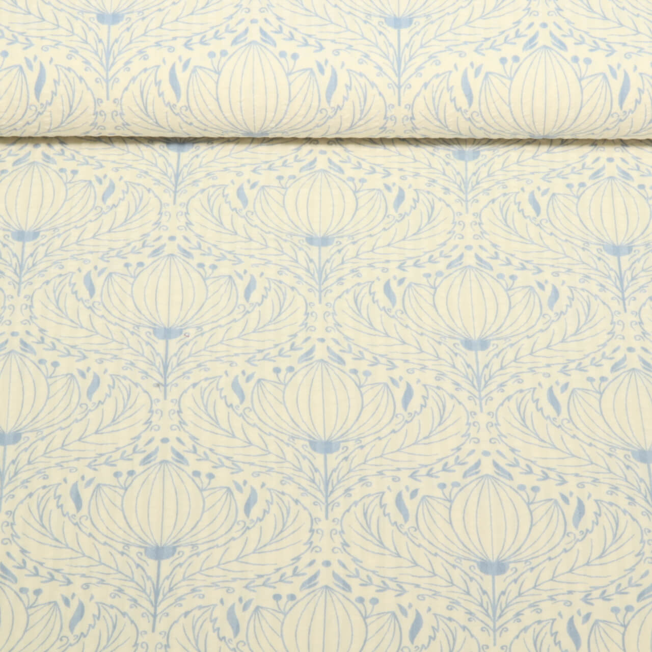 Seersucker - Cotton Vintage Blüten Ecru Blau