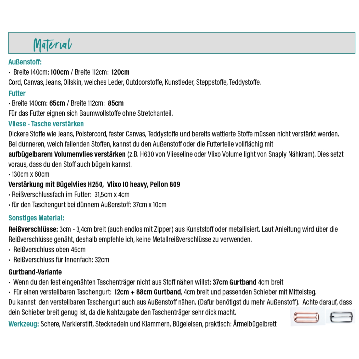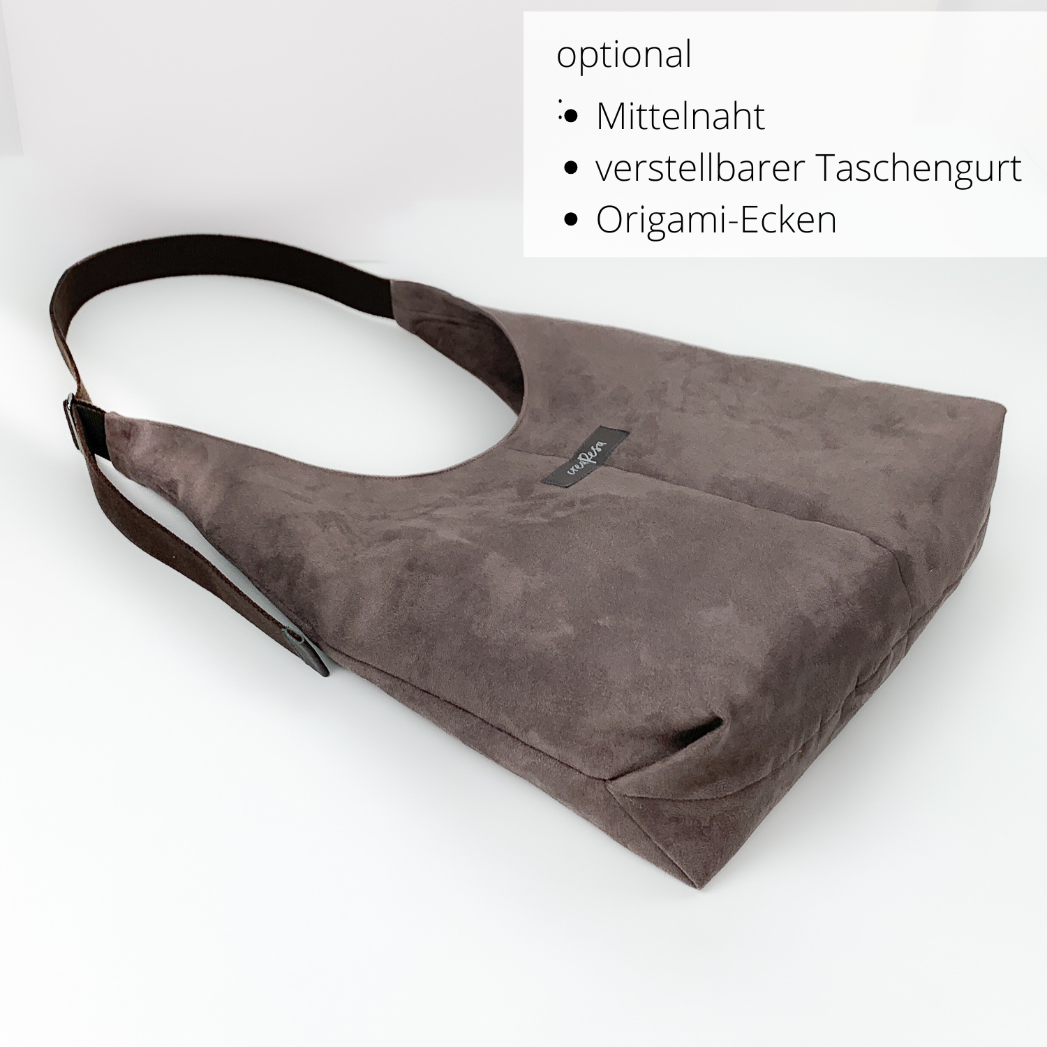 optional: verstellbarer Taschengurt, Origami-Ecken, Seitenteil mit Mittelnaht