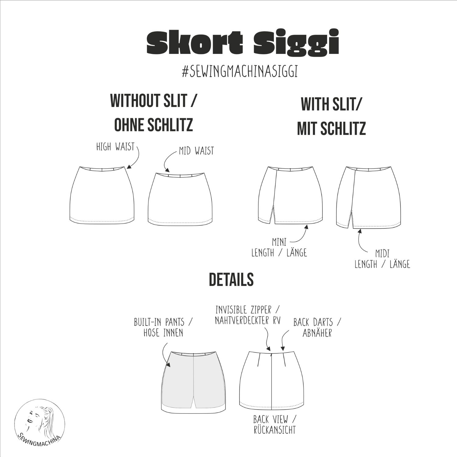 Siggi ist dein perfektes It-Piece für den Sommer und lässt sich mit Strumpfhose und Boots auch wunderbar herbsttauglich stylen. - zwei Längen - optionaler Schlitz - high- oder mid-waist Schwierigkeitsgrad Etwa 2/5 - perfekt für Anfänger mit Grundkenntnissen. Schau dir gern vorab das Videotutorial zum Schnittmuster an, dort kannst du alle Schritte sehen und für dich einschätzen.