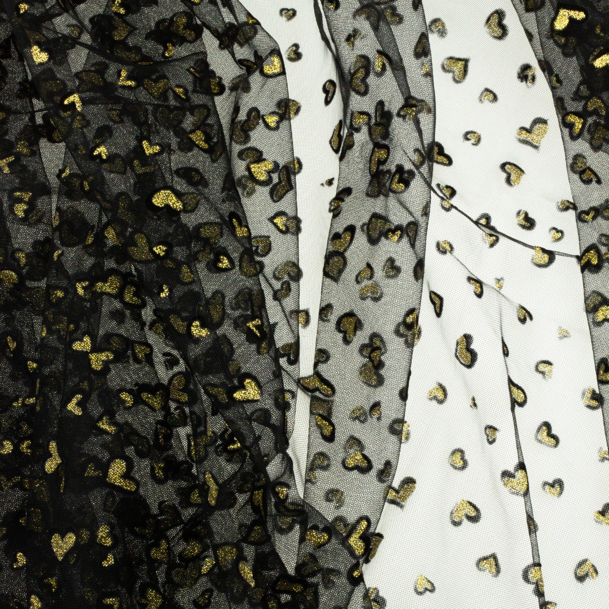 Soft Tüll Flockdruck Herz mit Goldglitzer Schwarz