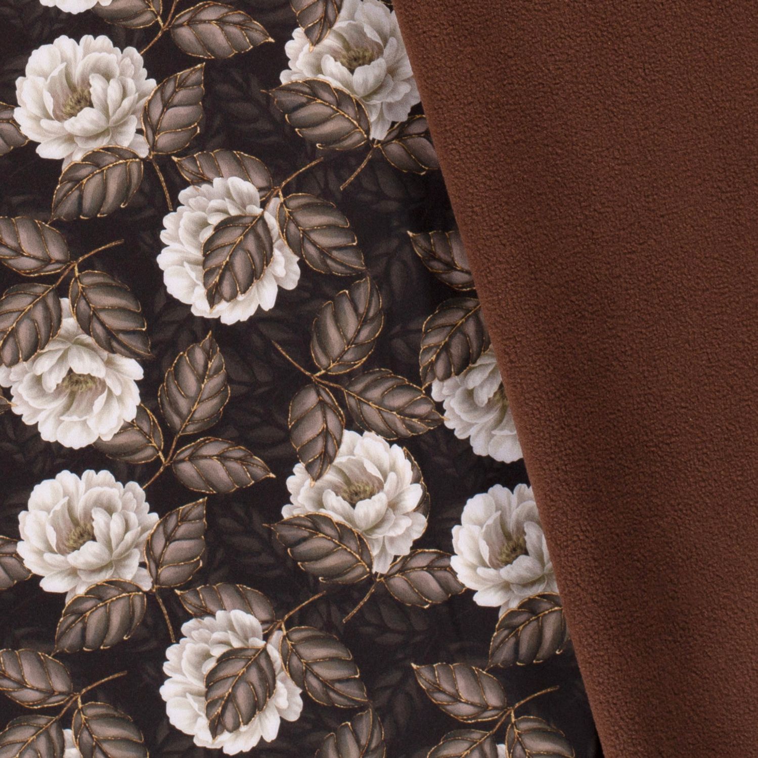 Softshell Pfingstrosen und Blätter Creme/Braun Digital