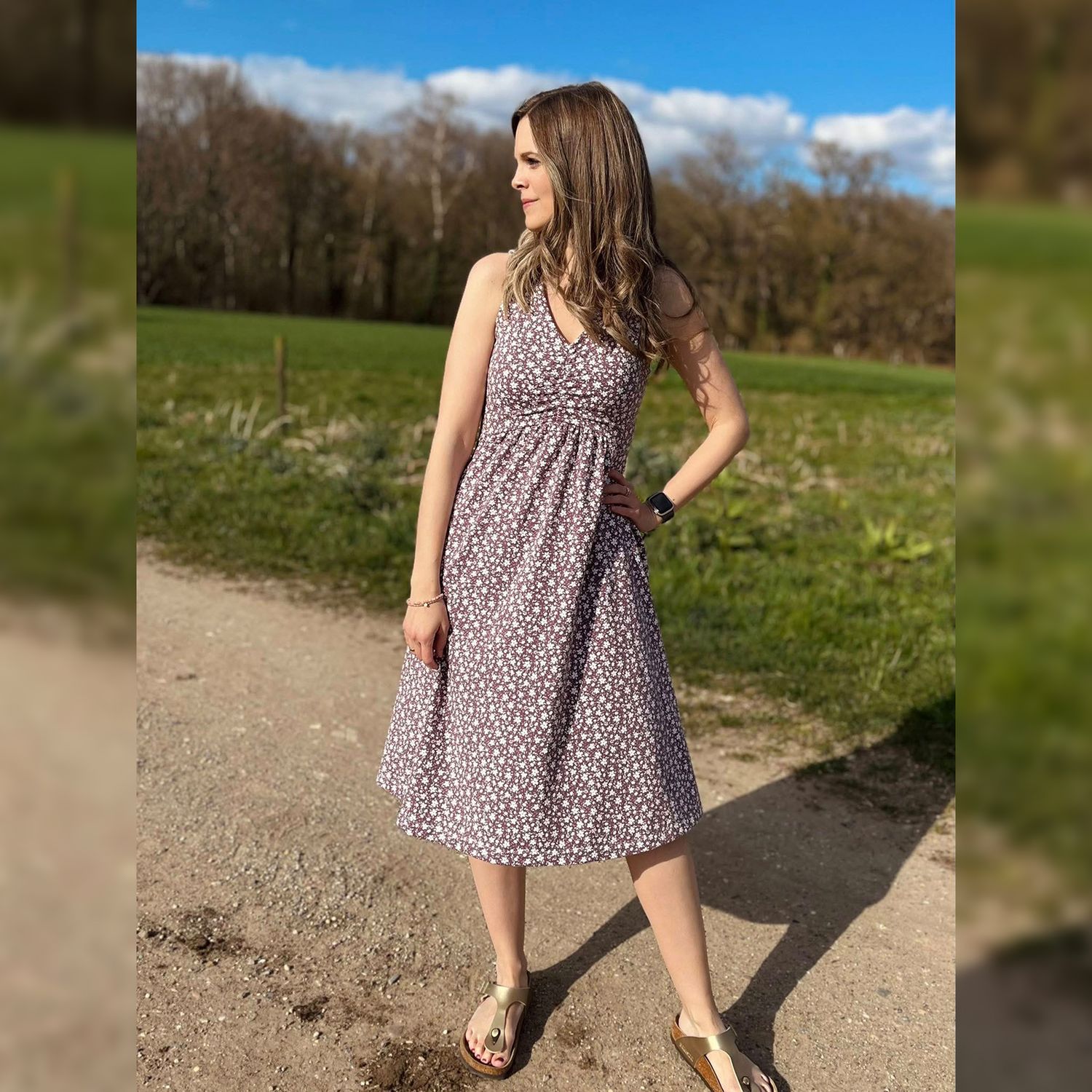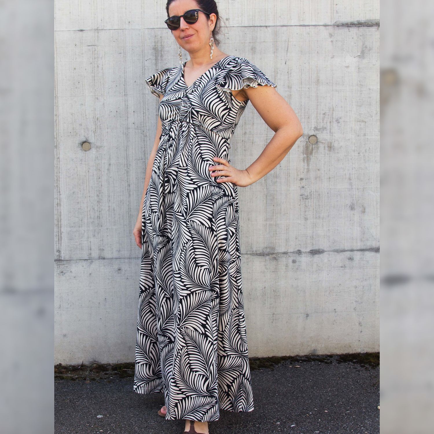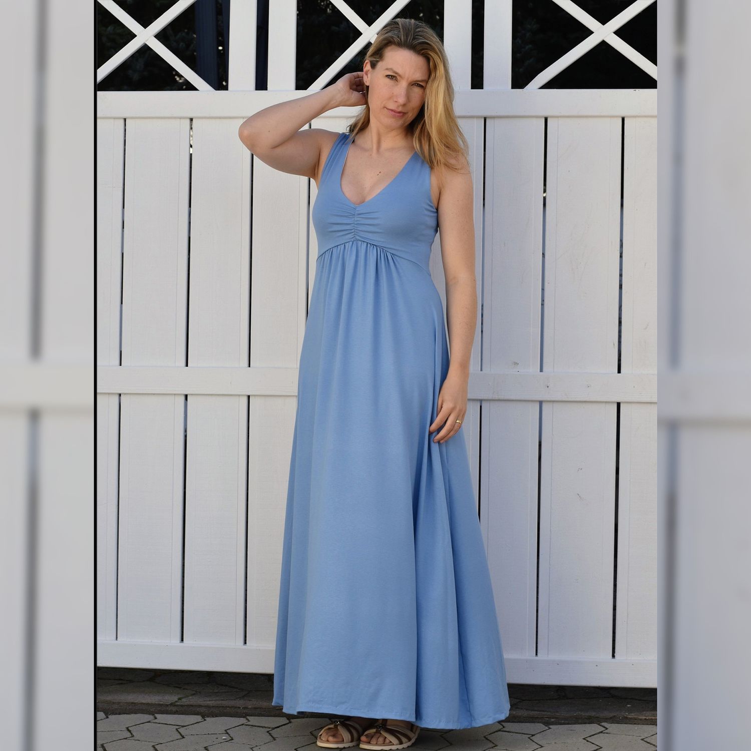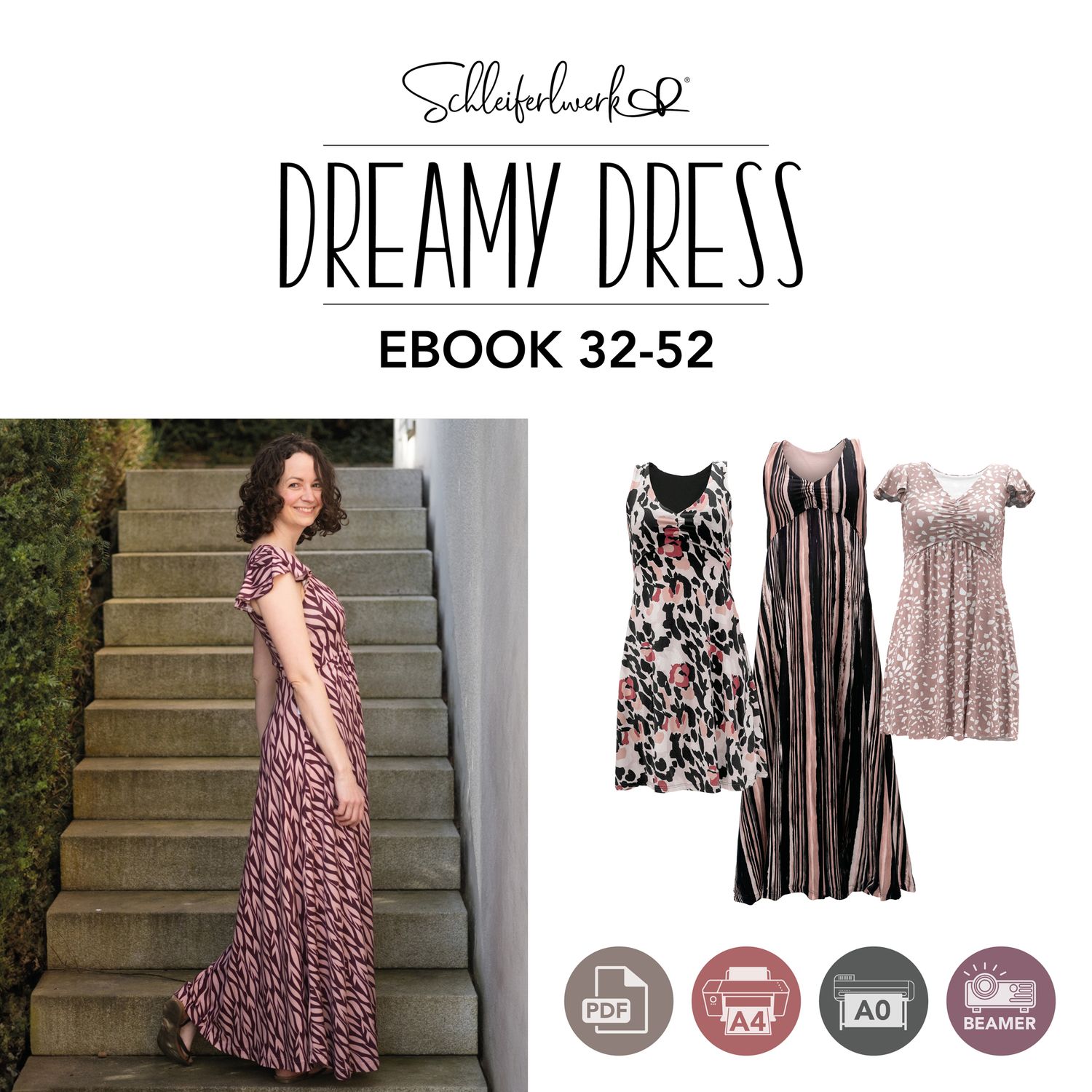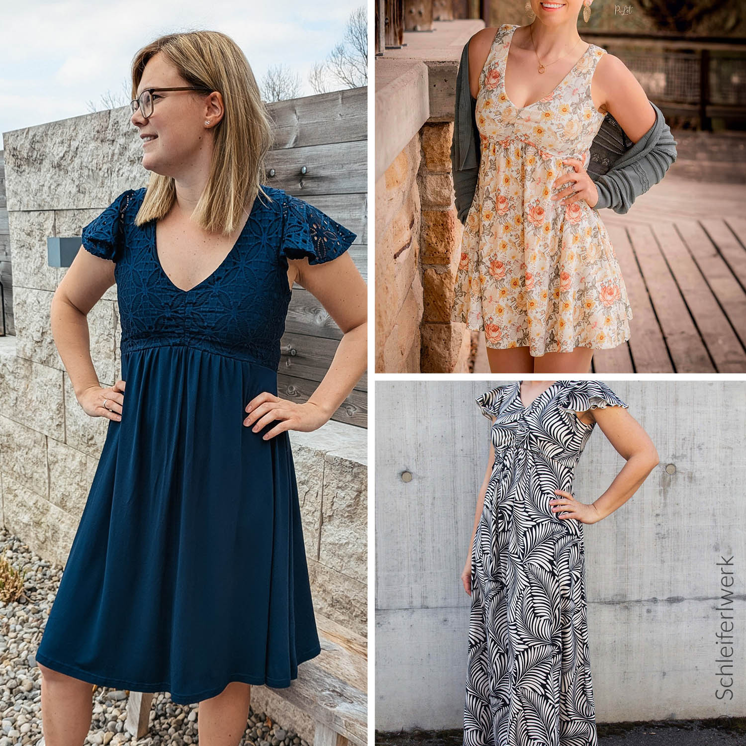 Das Dreamy Dress ist ein luftiges Sommerkleid für Damen. Du kannst es mit hohem oder tiefen Ausschnitt und in drei verschiedenen Längen nähen. Das Rockteil kann nach Belieben ebenfalls gerafft werden. Es wird entweder ärmellos oder mit Flatterärmeln genäht. Optional können Nahttaschen hinzugefügt werden. Das Schnittmuster ist für NähanfängerInnen geeignet.