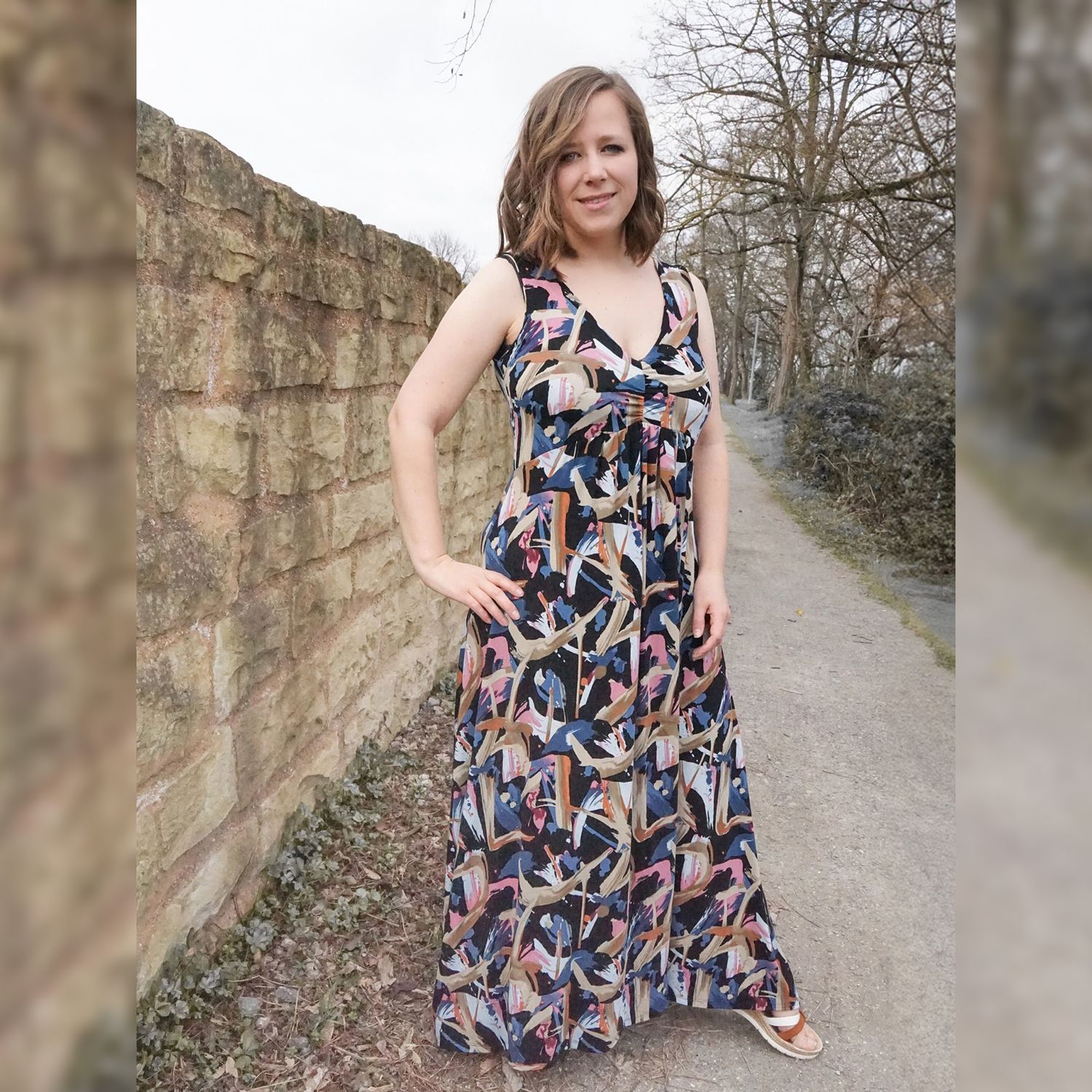 Das Dreamy Dress ist für elastische Stoffe ausgelegt. Am besten eignet sich Viskosejersey, da dieser besonders schön fällt und sommerlich leicht ist. Du kannst aber auch klassischen Baumwolljersey verwenden. Wenn du dich am Ende einer Größe (laut Maßtabelle) befindest, kannst du bei klassischem Baumwolljersey auch die nächstgrößere Größe wählen.