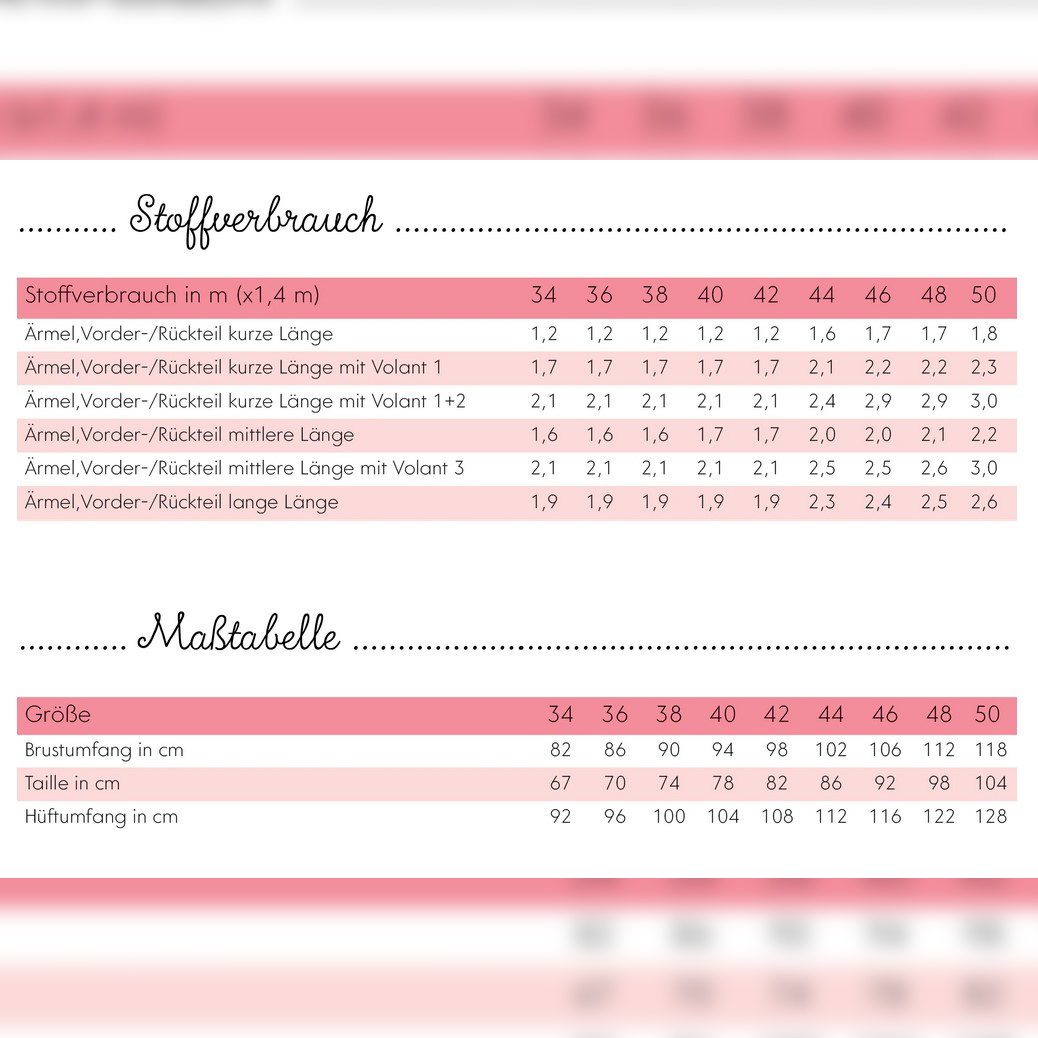 - Renate wird aus Webware genäht, besonders gut eigen sich locker fallende (Blusen-)Stoffe z. B. mit Viskose-Anteil, oder auch Batist, Chambray und Rayon (Viskose) oder Tencil. Aber auch leichte Leinen- und Jeansstoffe können wunderbar verarbeitet werden. Mit festeren Stoffen haben die Ärmel einen ganz besonderen Stand.