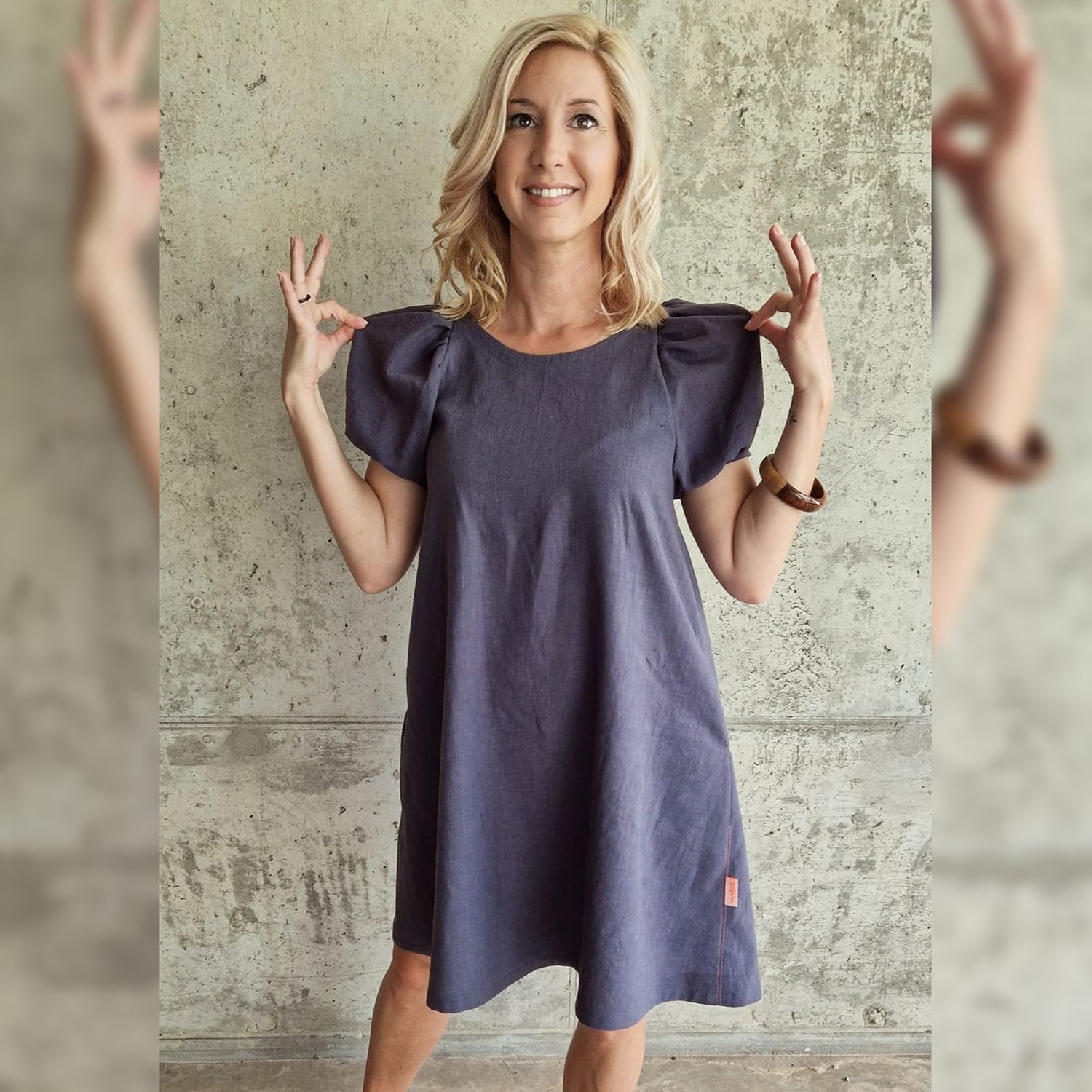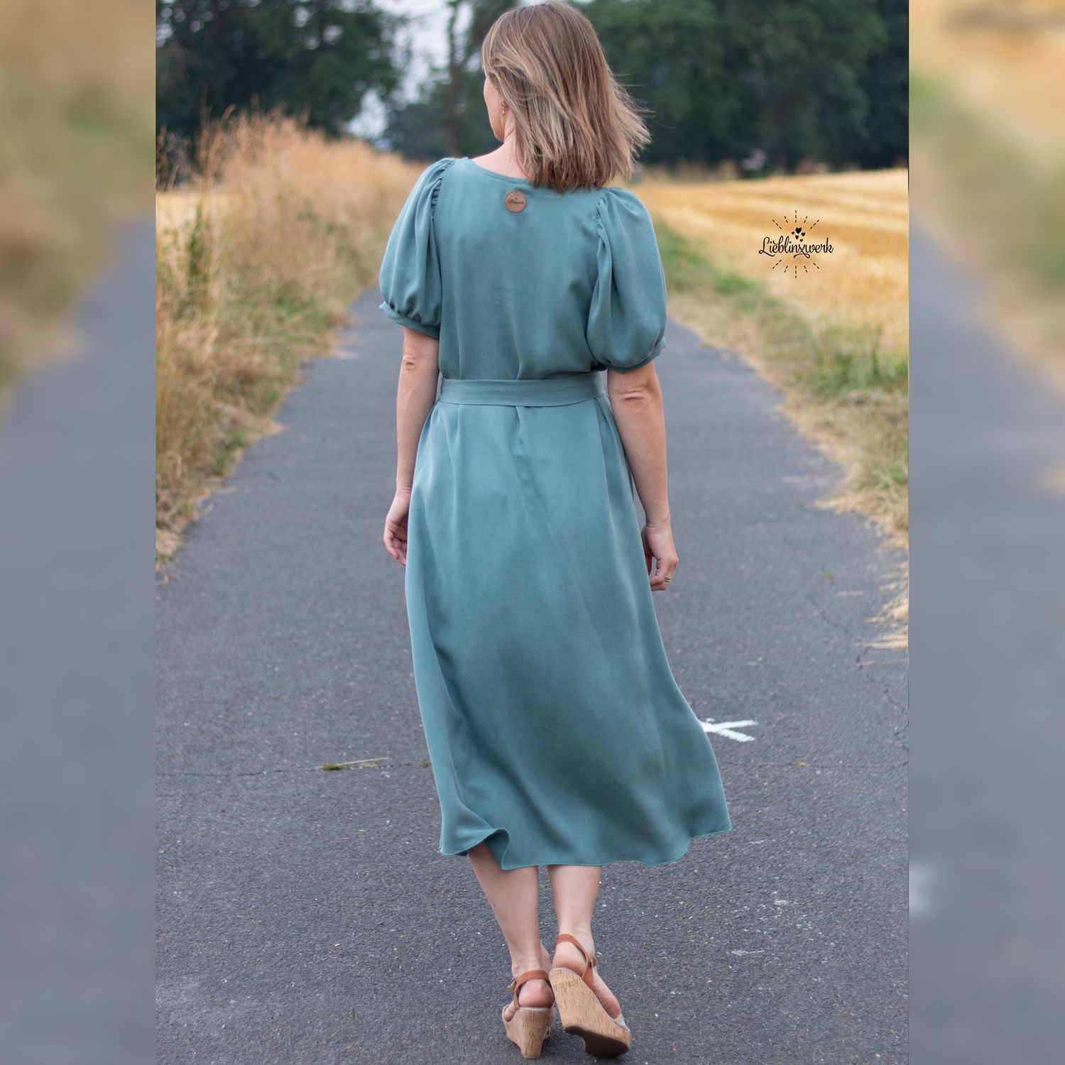 Renate ist ein sensationelles Schnittmuster für ein stilvolles Damenkleid mit traumhaften Super-Puff-Puff-Ärmeln. Die extra weiten, gerafften Ärmel sind ein absoluter Hingucker! Sie verleihen dem Kleid eine verspielte Note und dir einen femininen Look. Das locker sitzende Webware-Kleid sorgt für ein angenehmes Tragegefühl und lässt dich luftig und leicht durch den Tag schweben. Ein Bindegürtel betont deine Taille und macht eine wunderschöne Silhouette. Und das Beste daran: Du kannst Renate auch ohne Gürtel als Oversize-Blusenkleid tragen!