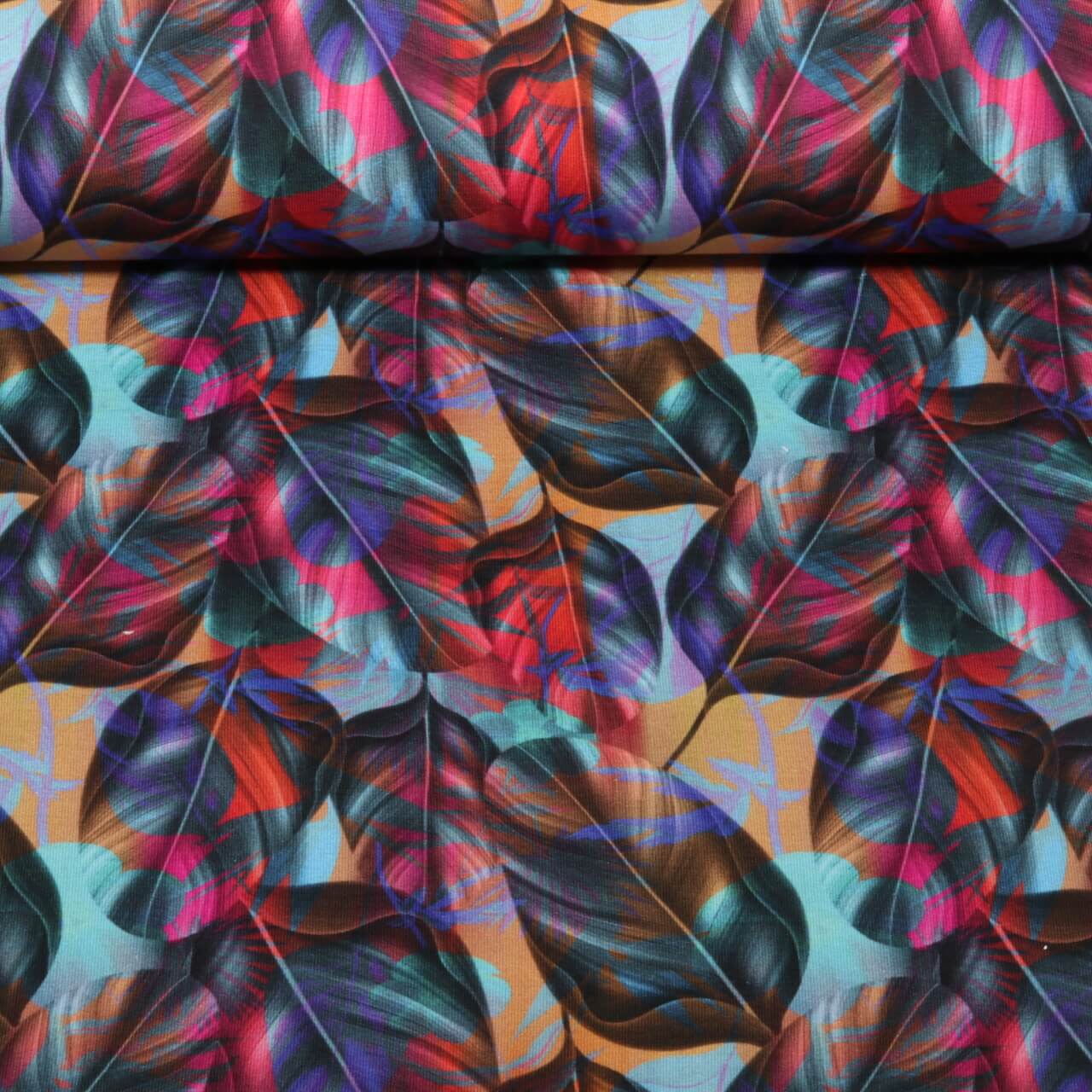 Sommersweat - French Terry Digitaldruck Blätter Blau
