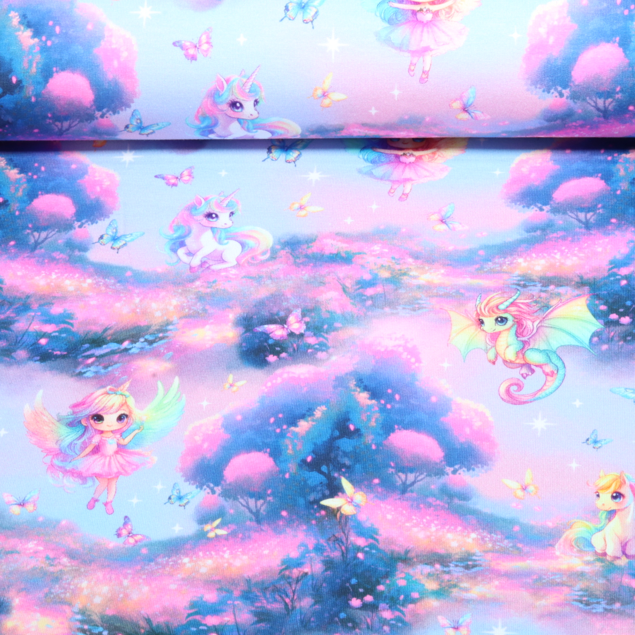 Sommersweat - French Terry Digitaldruck Bunte Feen Rosa