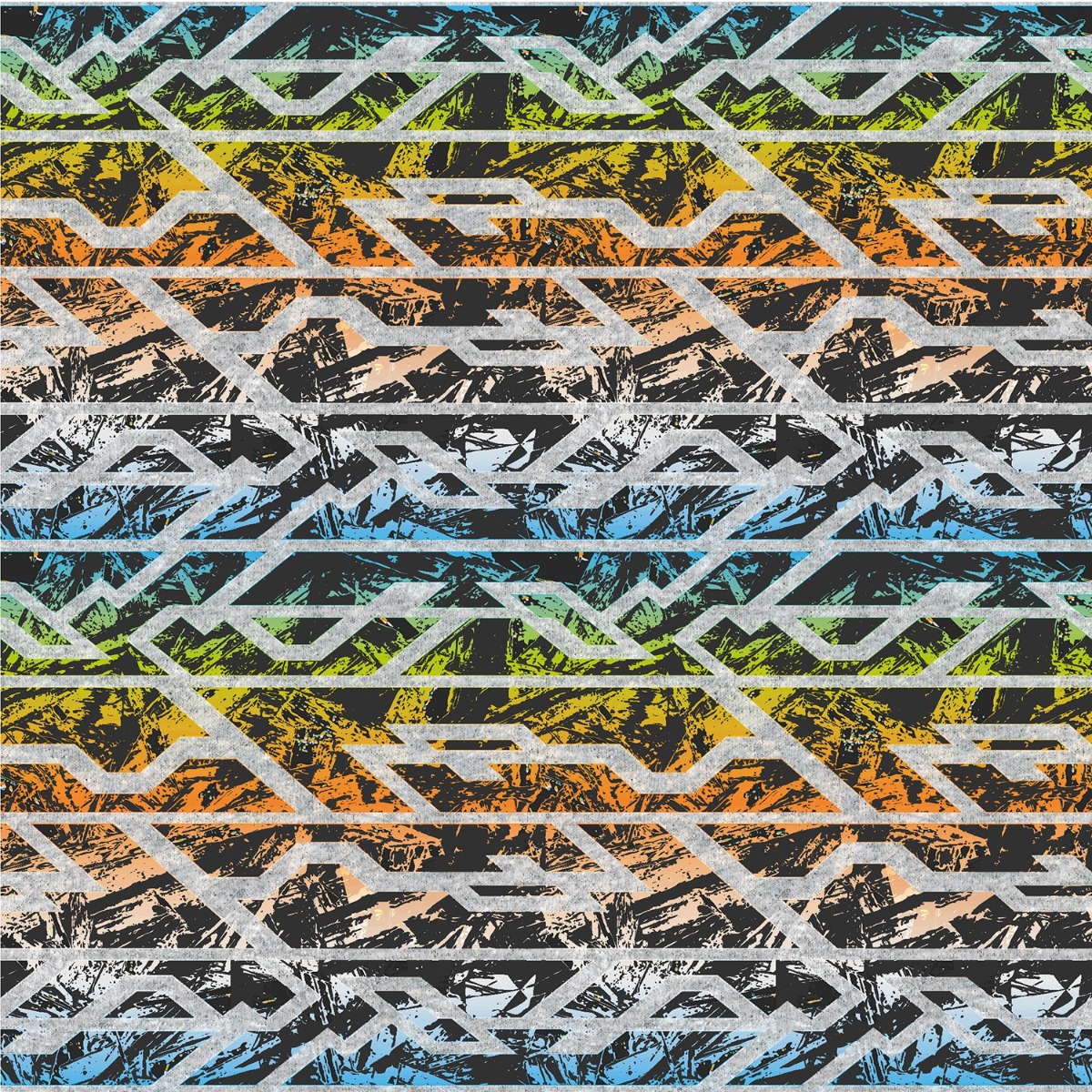 Sommersweat Bunte Reifenspuren auf Hellgrau Meliert Digital