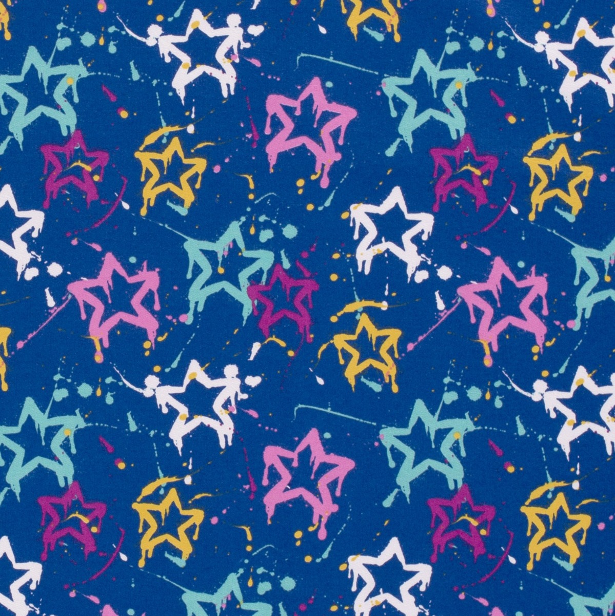 Sommersweat Bunte Sterne auf Royalblau