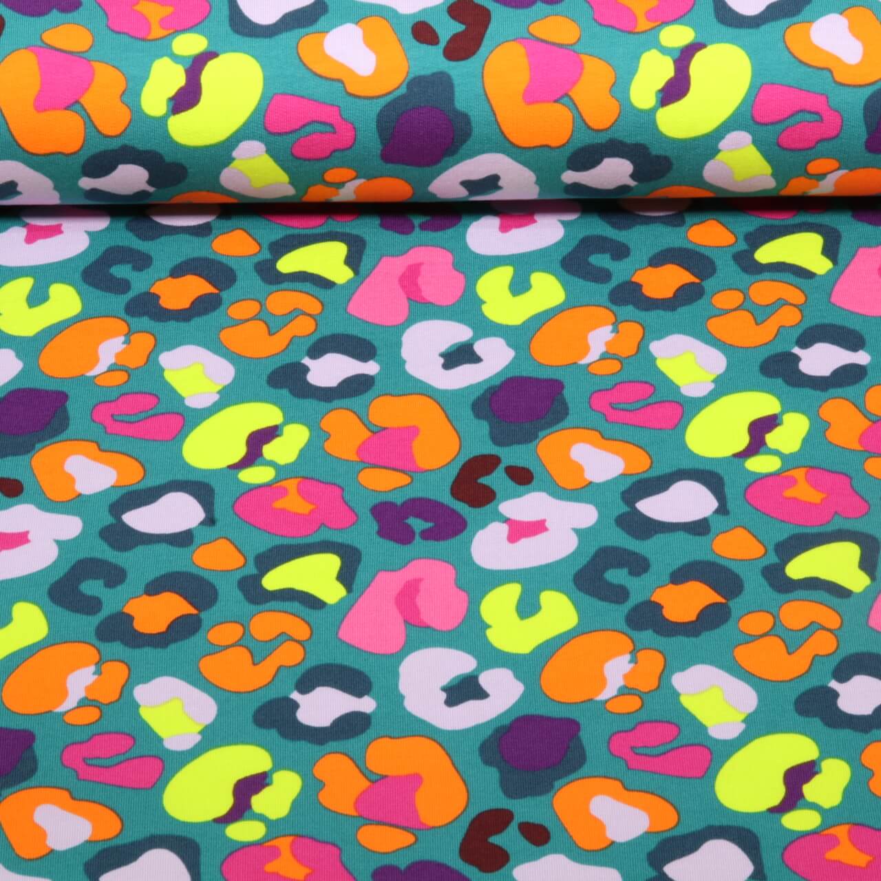 Sommersweat - French Terry Buntes Leomuster Petrol