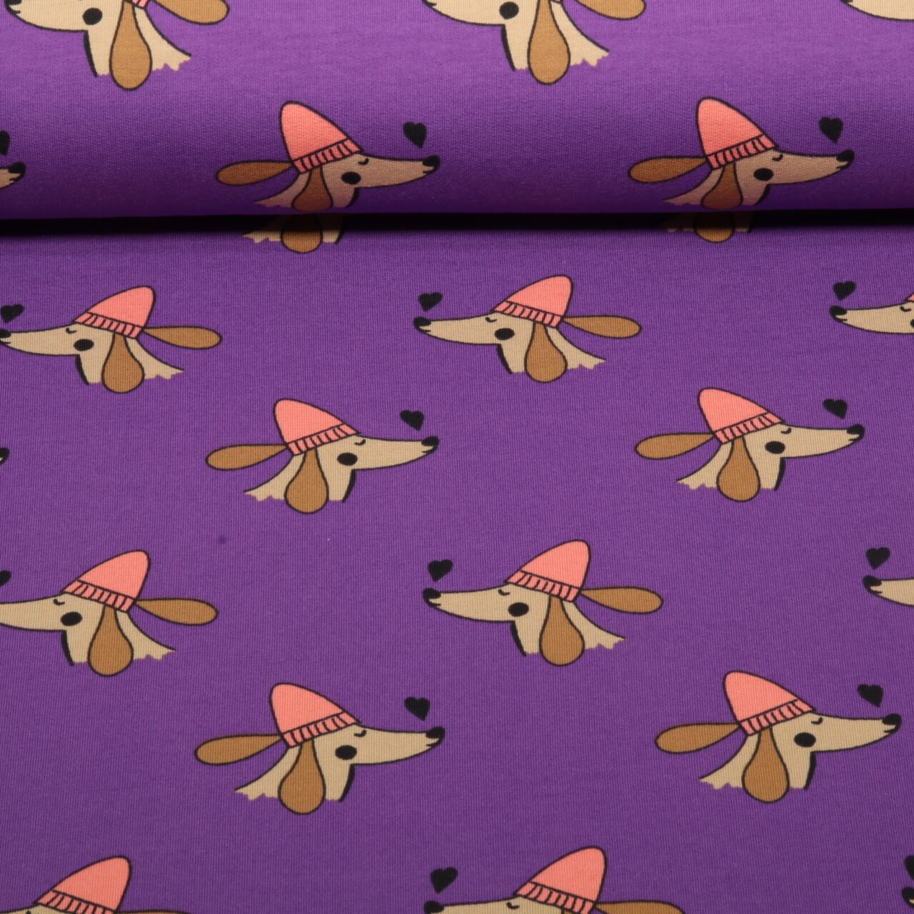 Sommersweat - French Terry Dackel mit Herz Lila