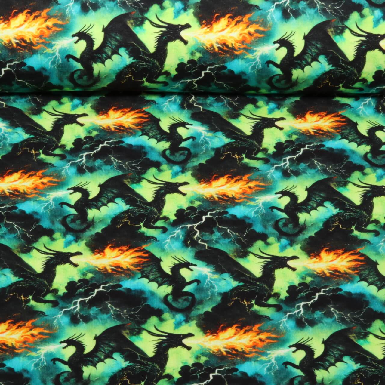 Sommersweat - French Terry Digitaldruck Drachen Grün