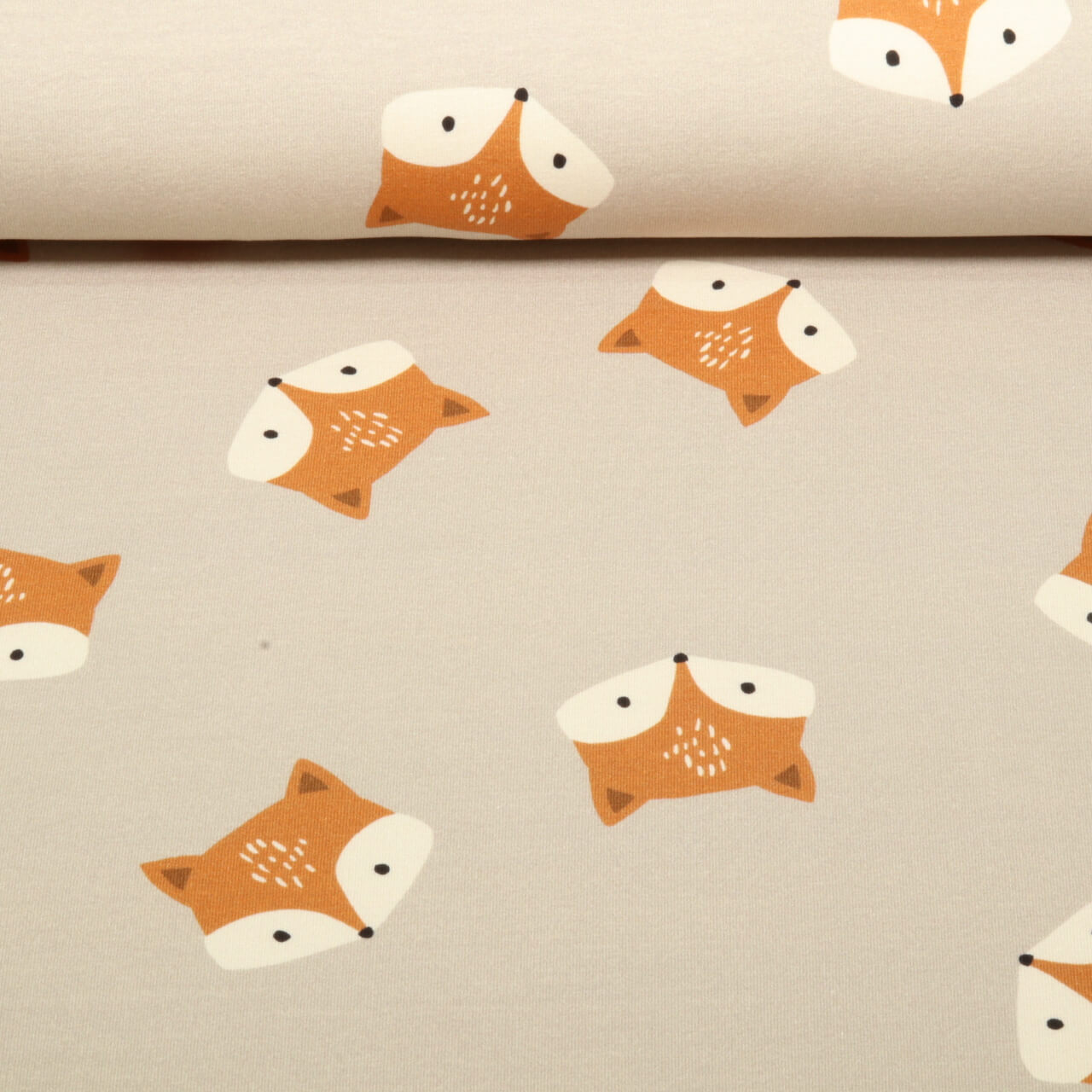 Sommersweat - French Terry Digitaldruck Füchse Sand