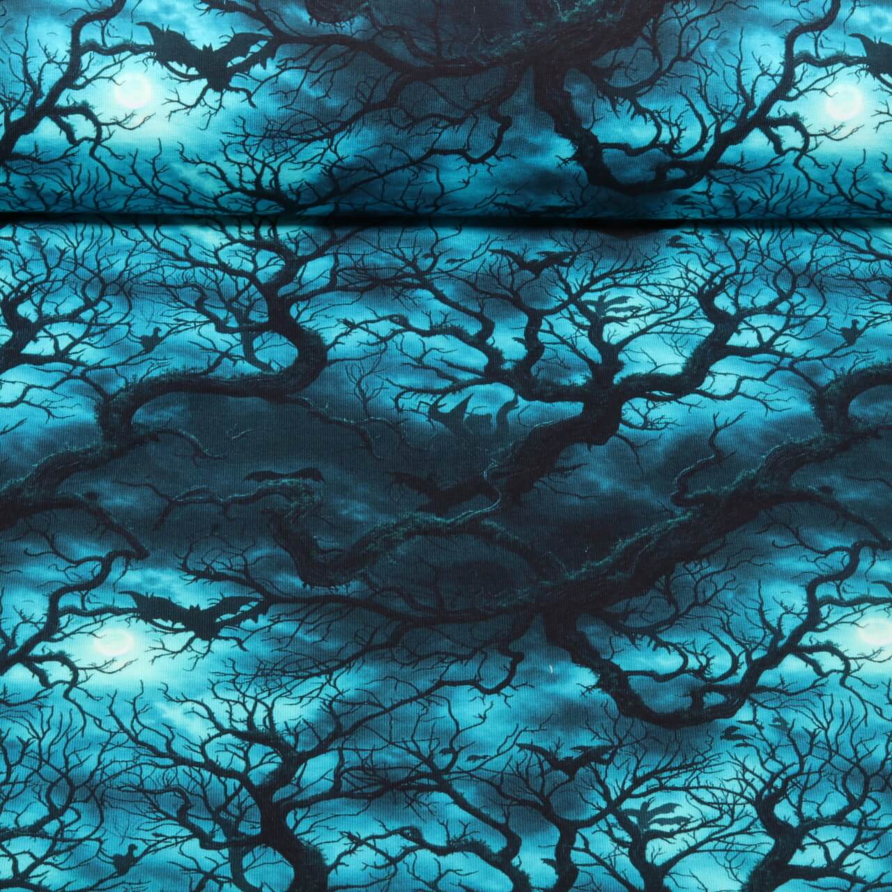 Sommersweat - French Terry Digitaldruck Halloween Nacht Türkis