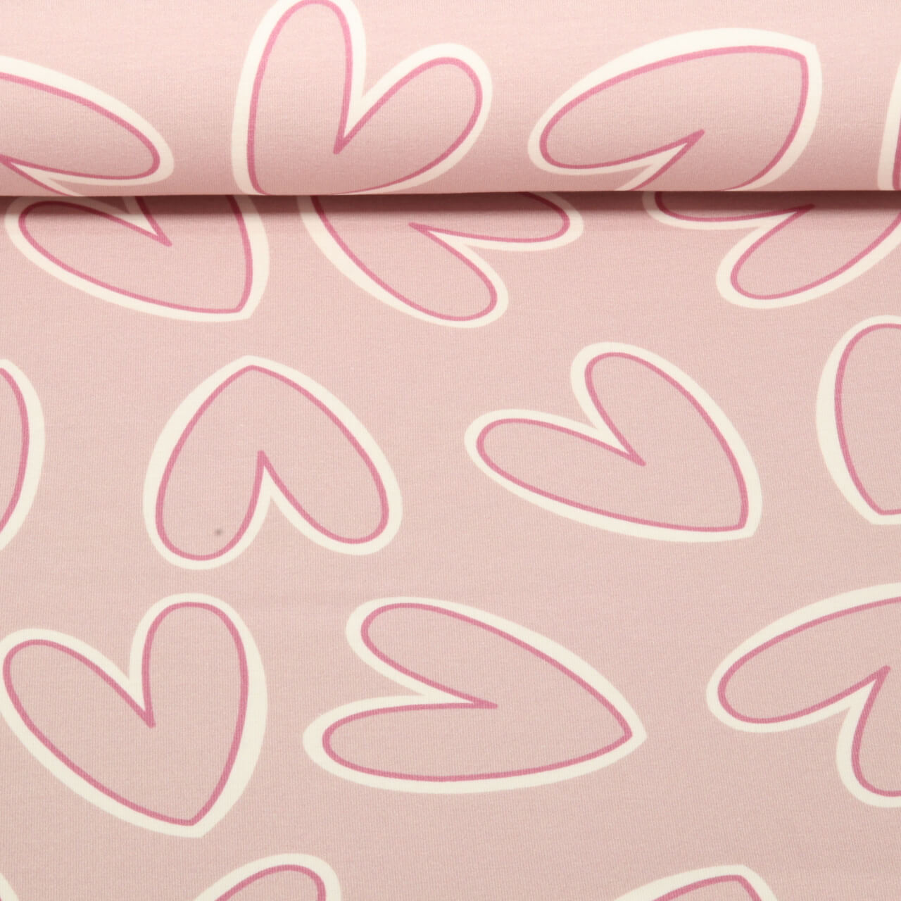 Sommersweat - French Terry Digitaldruck Herzen Altrosa