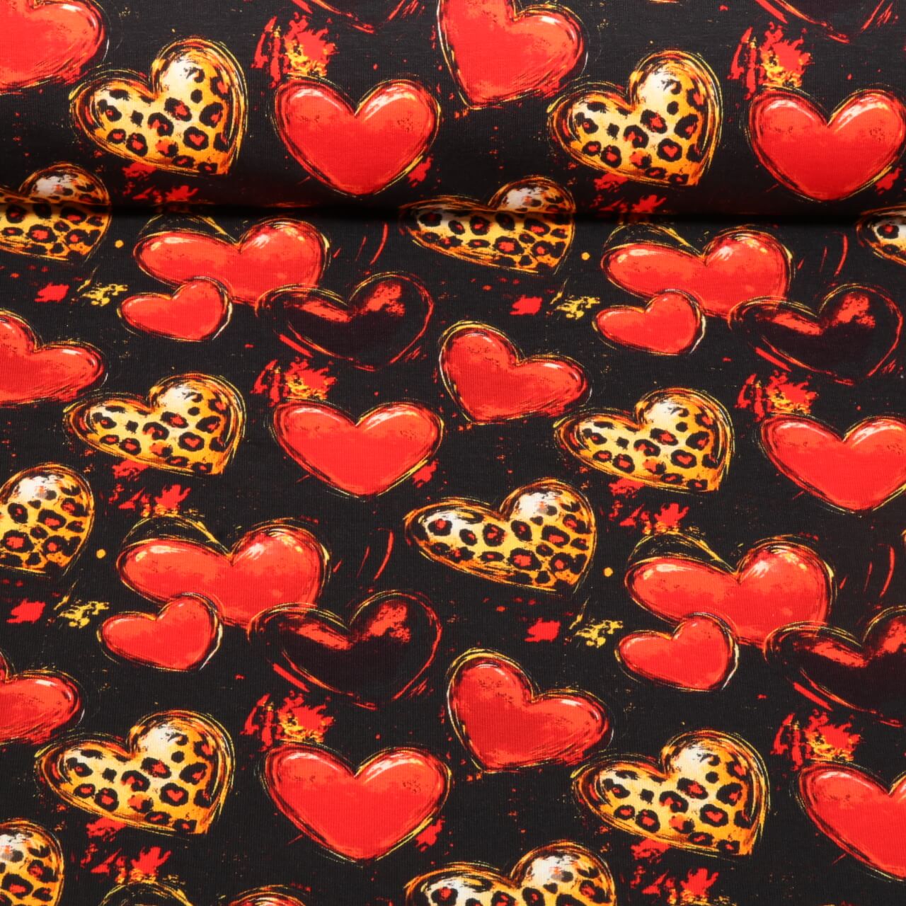 Sommersweat - French Terry Digitaldruck Herzen Leo Schwarz
