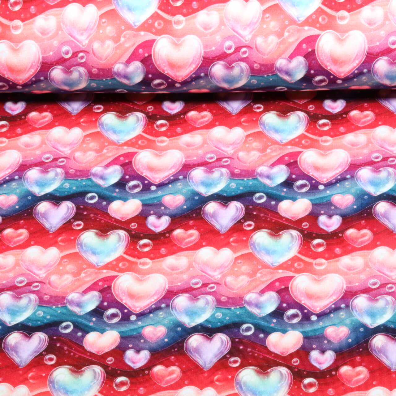 Sommersweat - French Terry Digitaldruck Herzen Wellen Rot
