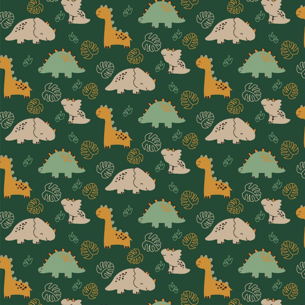 Sommersweat Kleine Dinosaurier & Blätter auf Dunkelgrün