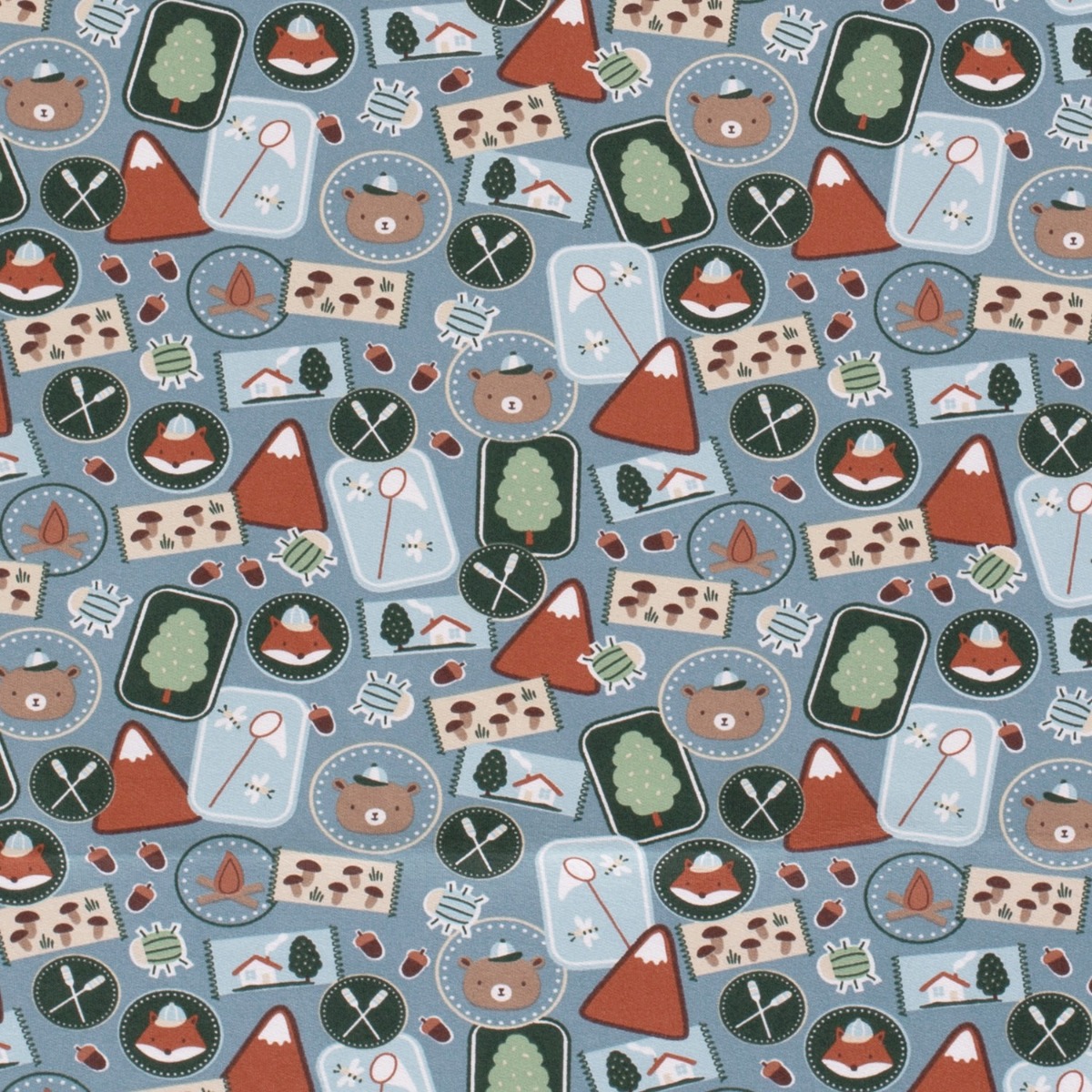 Sommersweat Patch Bär & Fuchs auf Hellem Rauchblau