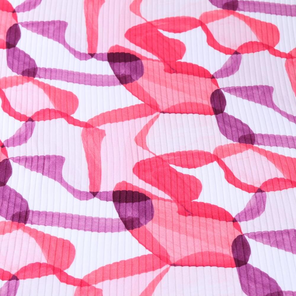 Baumwolle Rippjersey Digitaldruck - Retro Ecru Rot