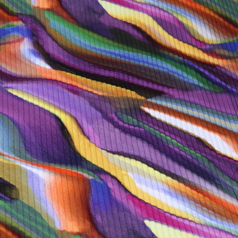 Rippjersey - Digitaldruck Wellen Gelb Mehrfarbig