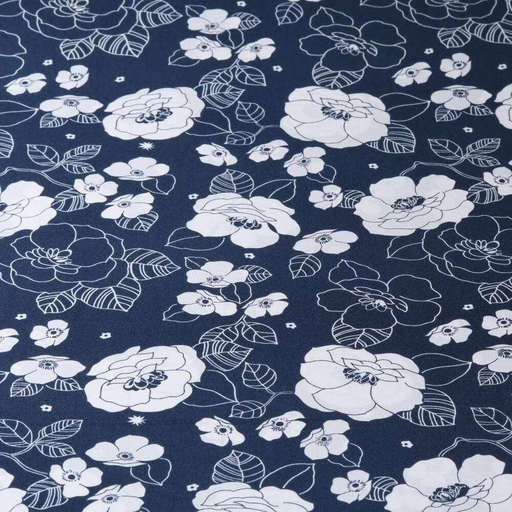 Bekleidungsstoff Rosenblüten auf Blau