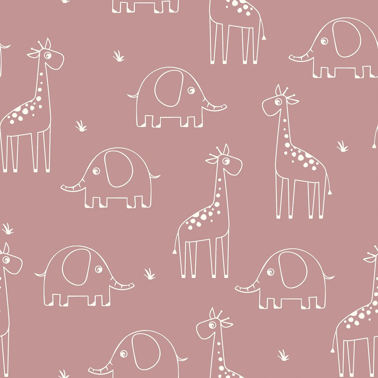 Baumwolle Musselin - Elefant und Giraffe auf Hellmauve