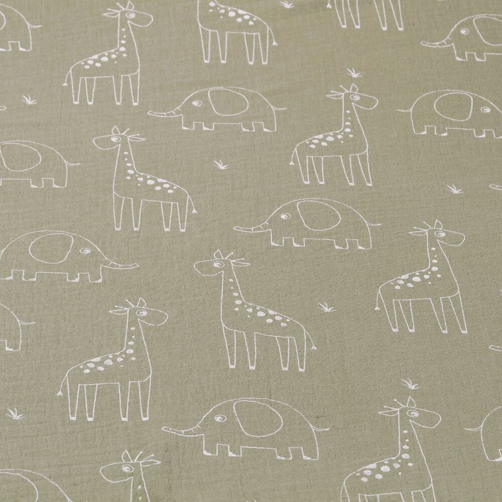 Baumwolle Musselin - Elefant und Giraffe auf Oliv