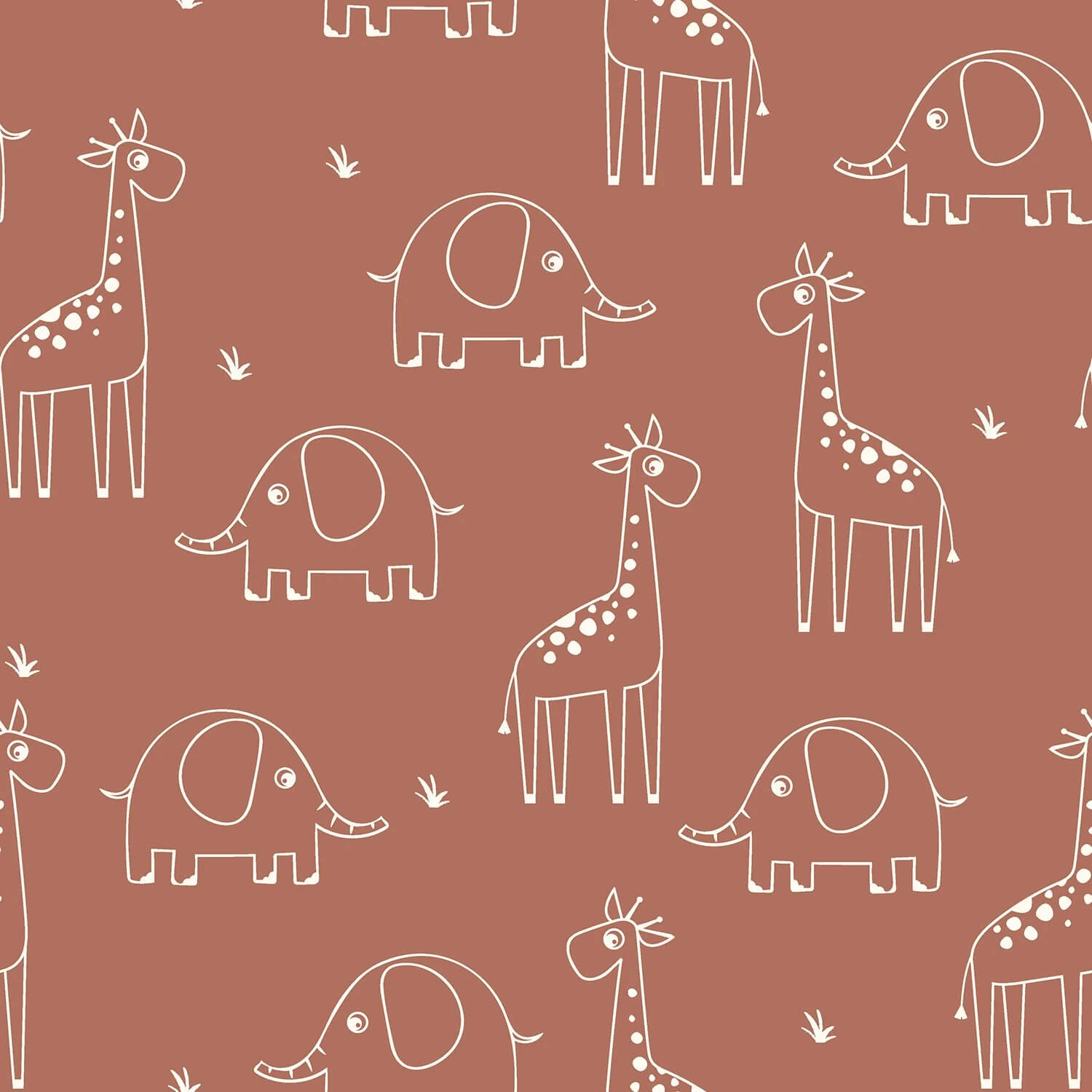 Baumwolle Musselin - Elefant und Giraffe auf Rosenholz