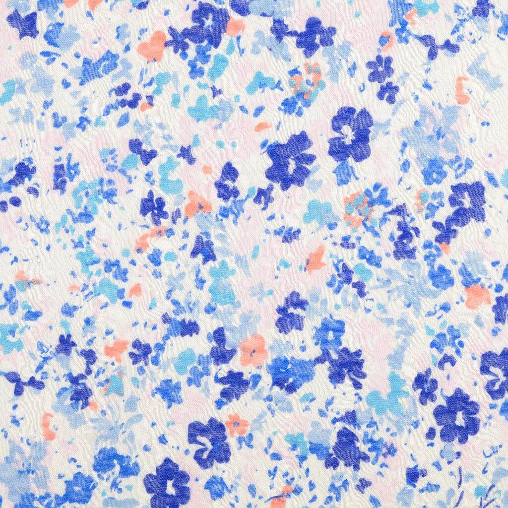 Strickstoff Blumen Blau auf Weiß XL Breit