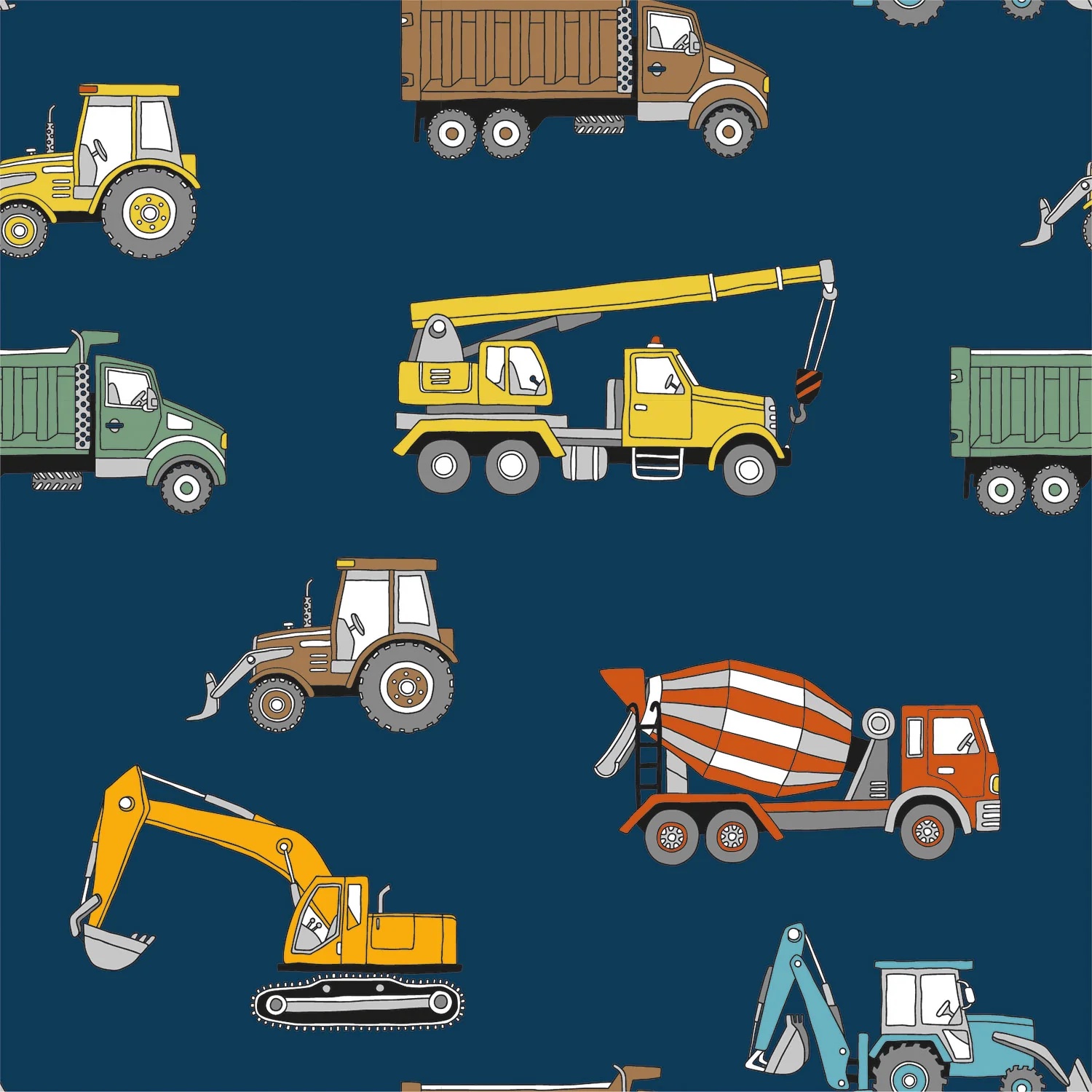 Sommersweat French Terry - Baufahrzeuge auf Blau