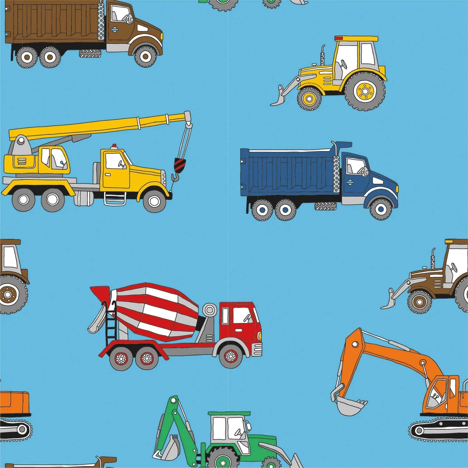 Sommersweat French Terry - Baufahrzeuge auf Hellblau