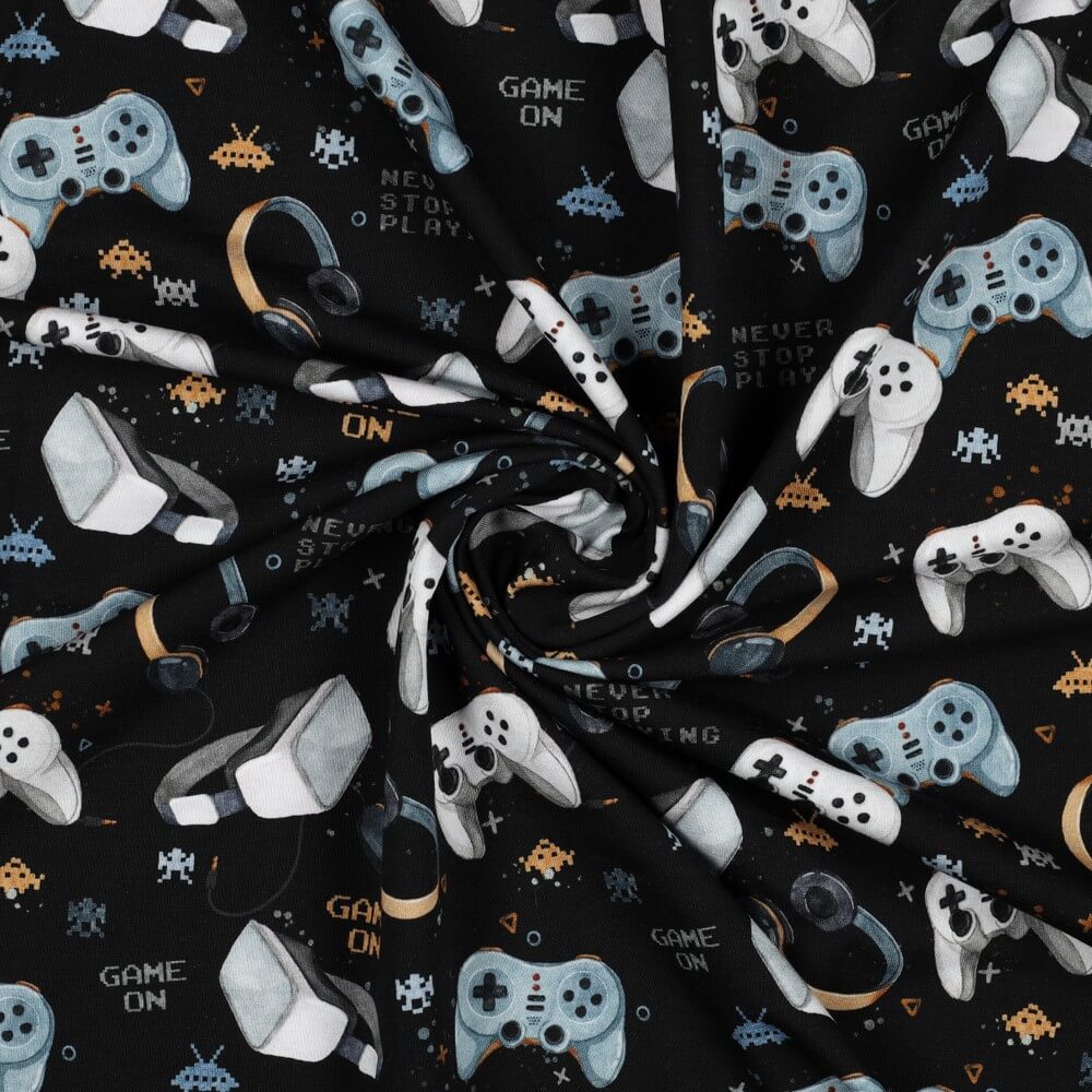 Sommersweat French Terry Digitaldruck Games auf Schwarz