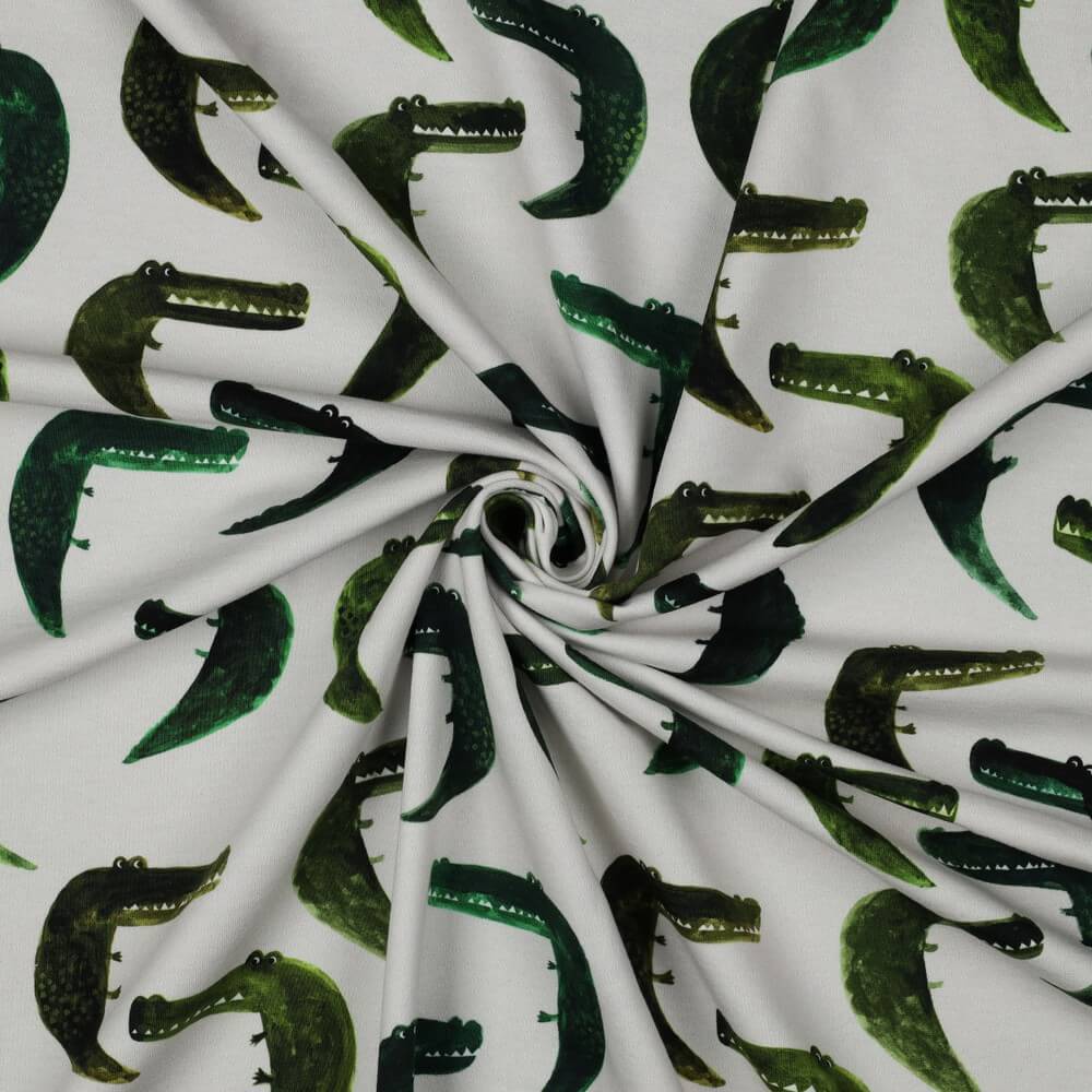 Sommersweat French Terry Digitaldruck Krokodile Ecru