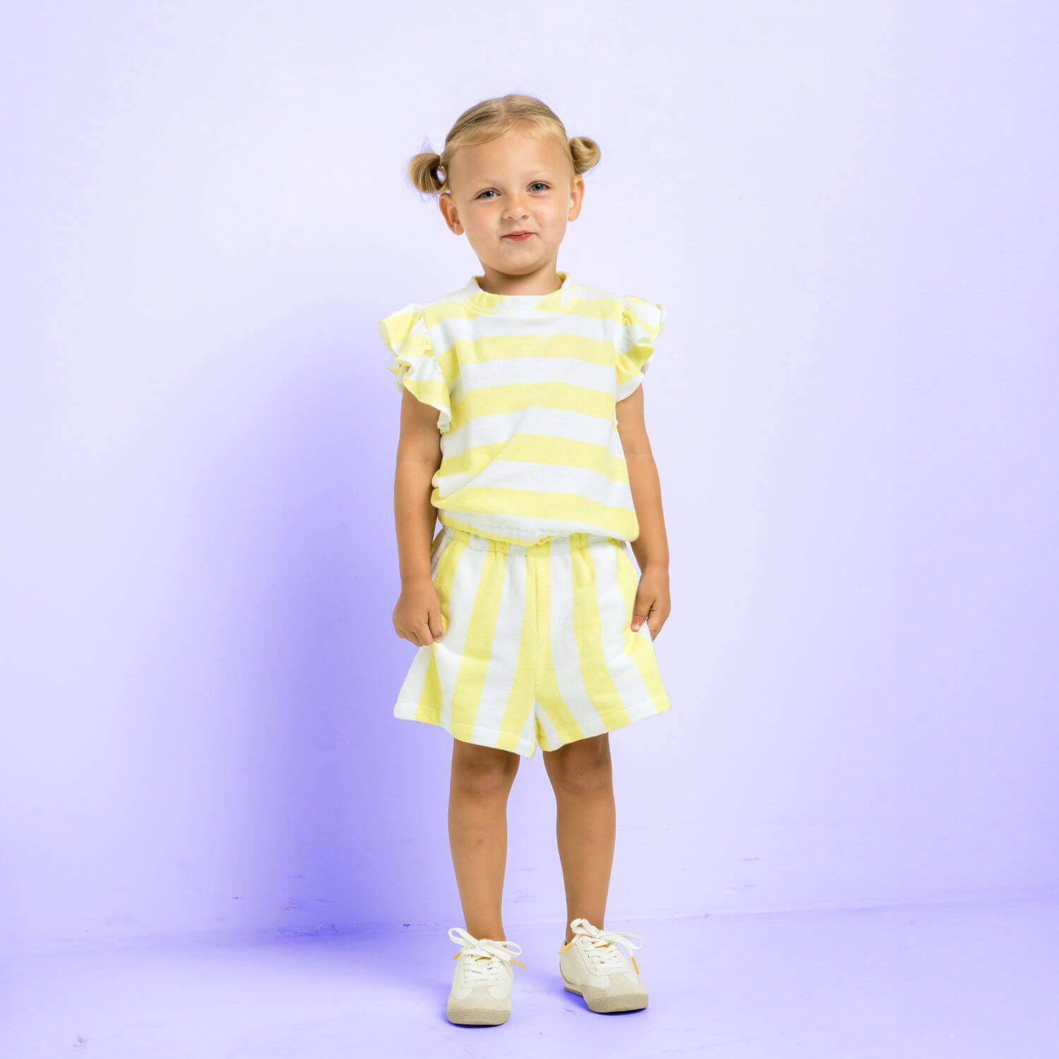 Stretch Frottee - Qjutie & the Qjutest Blockstreifen Weiß Gelb