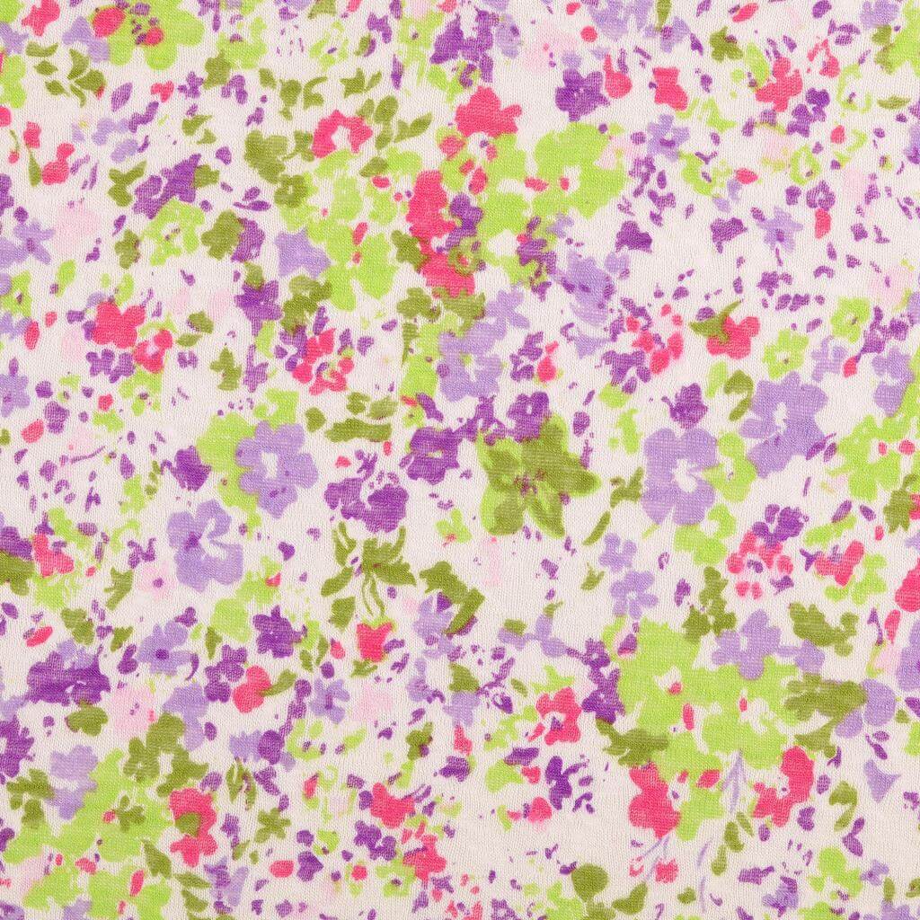 Strickstoff Blumen Grün auf Weiß XL Breit