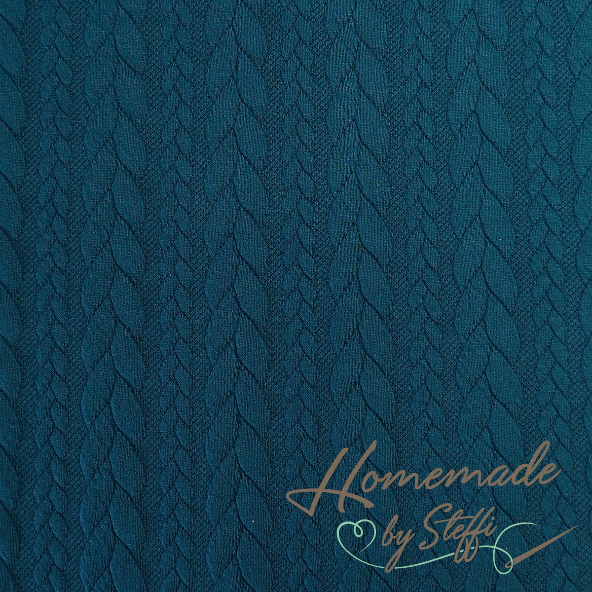 Strickstoff Cably Zopfmuster Petrol