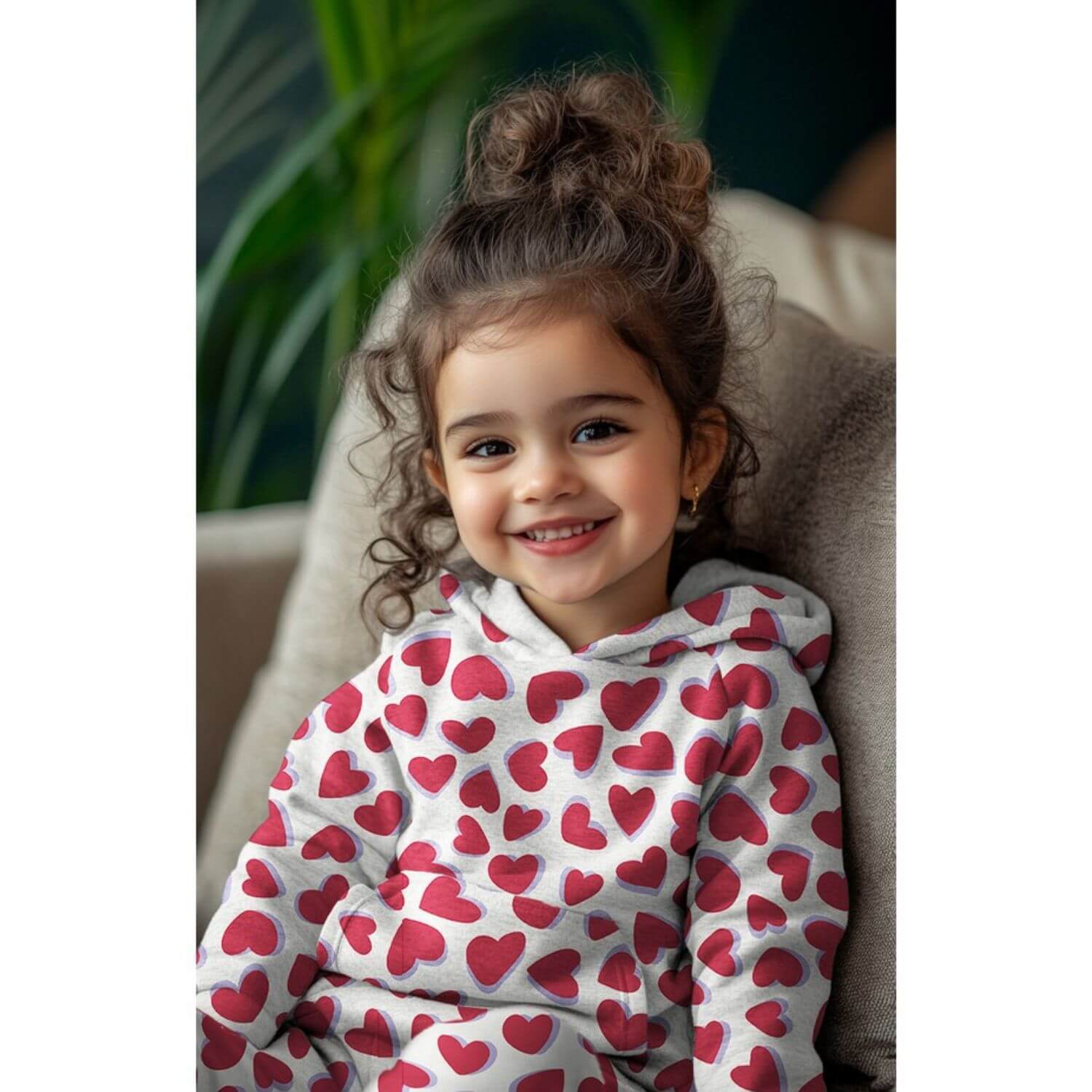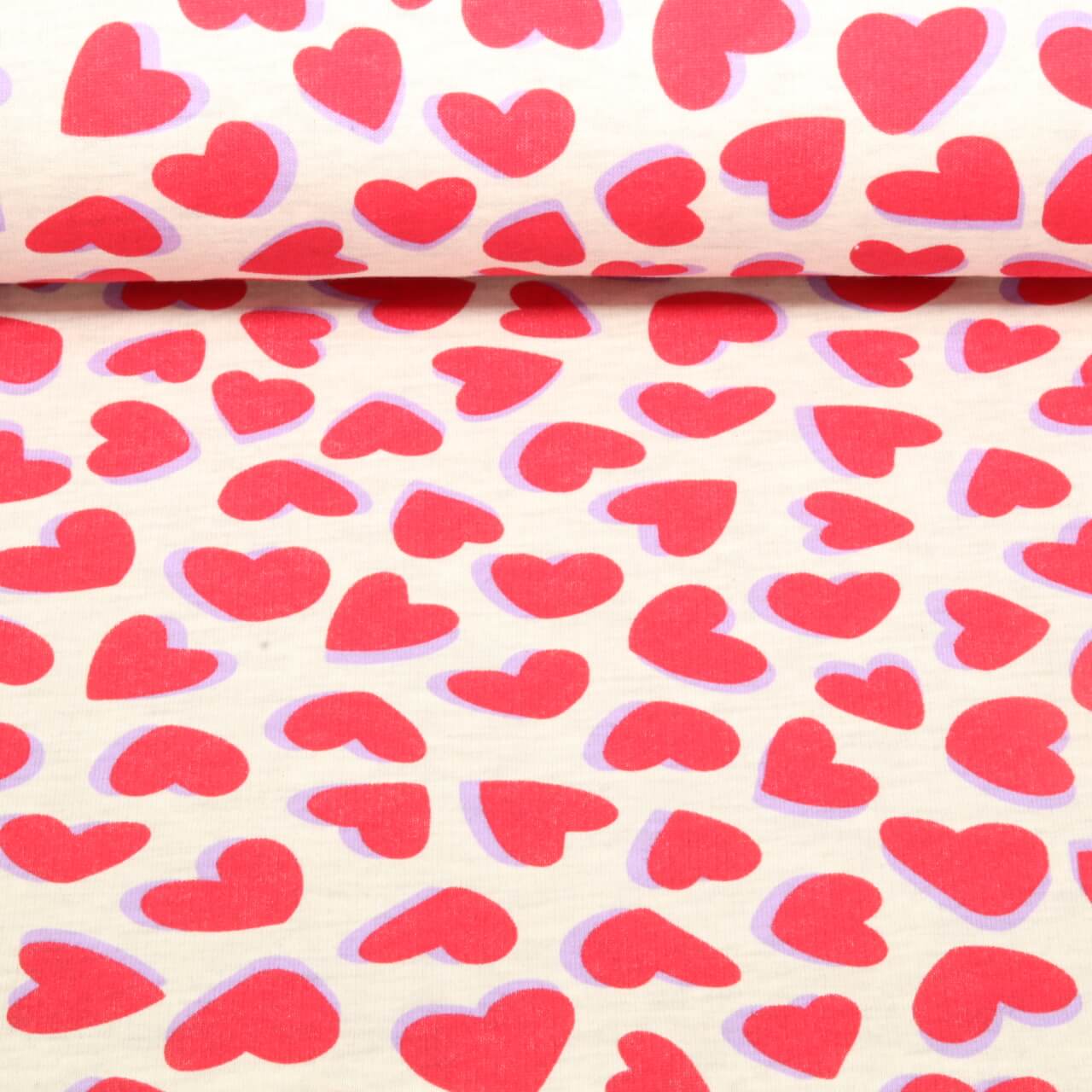 Sweat - Herzen Ecru Rot Melange