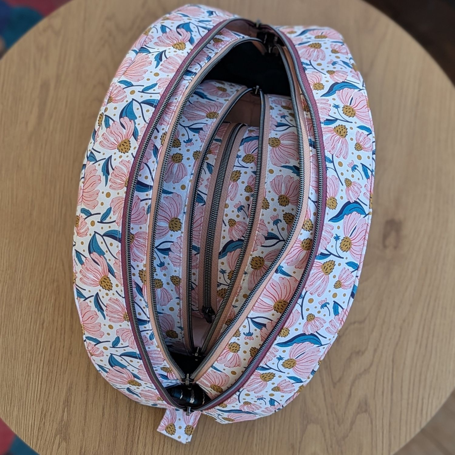 Die Tasche wird mit einem Reißverschluss geschlossen, der sich weit öffnen lässt und so einen bequemen Zugriff auf den Inhalt ermöglicht. Besonders schön: Im Inneren der Tasche wird kein Schrägband vernäht, was für ein sauberes, professionelles Finish sorgt. Ob als Kosmetiktasche, Stifte-Etui oder Reisebegleiter – Waikiki ist vielseitig einsetzbar und ein ideales Nähprojekt für alle, die Funktionalität mit Stil verbinden möchten. Das Projekt ist für geübte Nähanfänger/innen geeignet und bietet eine gute Gelegenheit, das Nähen von Reißverschlüssen und Formnähten zu üben.
