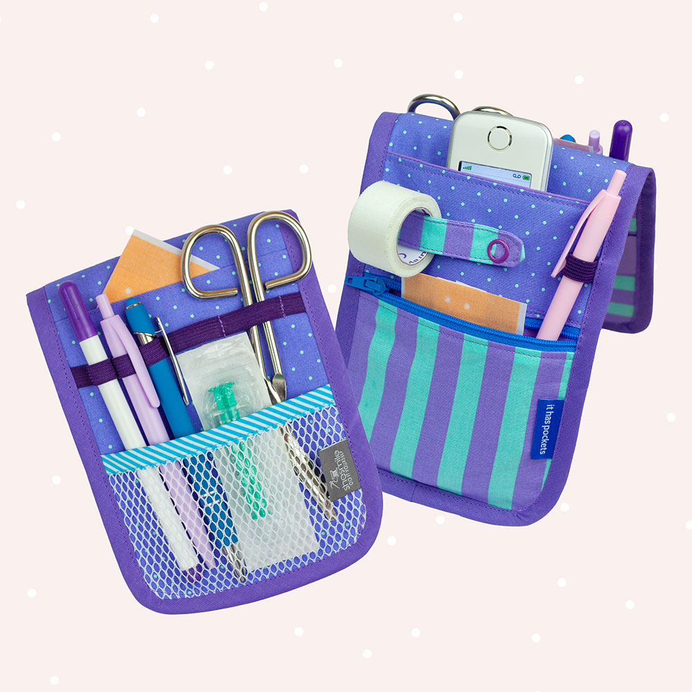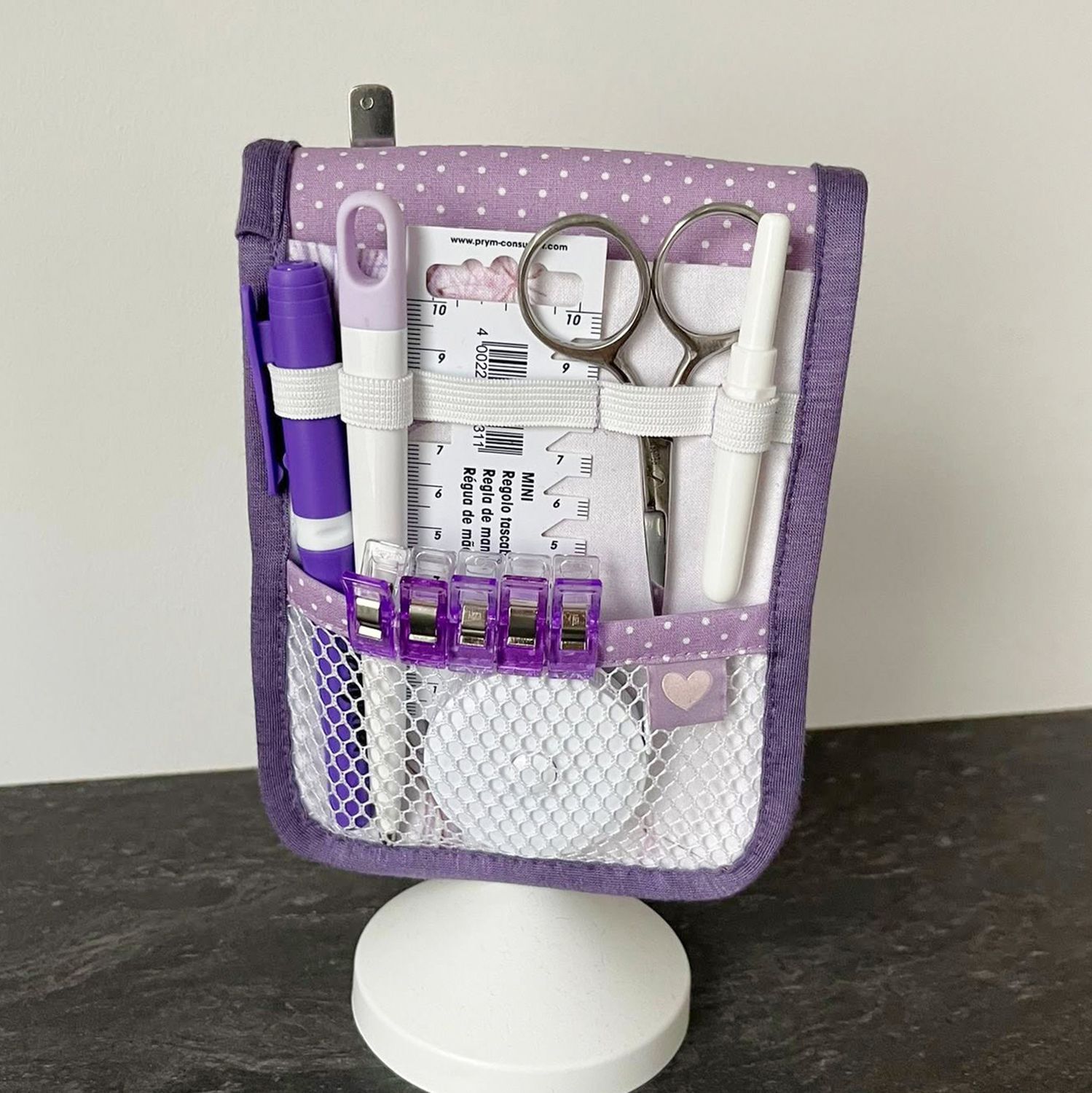 Als Taschenorganizer, mit 2 Taschenseiten, passend für klassische Kitteltaschen oder den Kasack. Ein eingenähter Magnet sorgt dafür, dass der Organizer sicher in der Tasche bleibt und nicht herausfällt. Auch kann der KittelKram so als Tischorganizer zum Aufstellen genutzt werden, z.B. für Nähutensilien oder Schmuck.