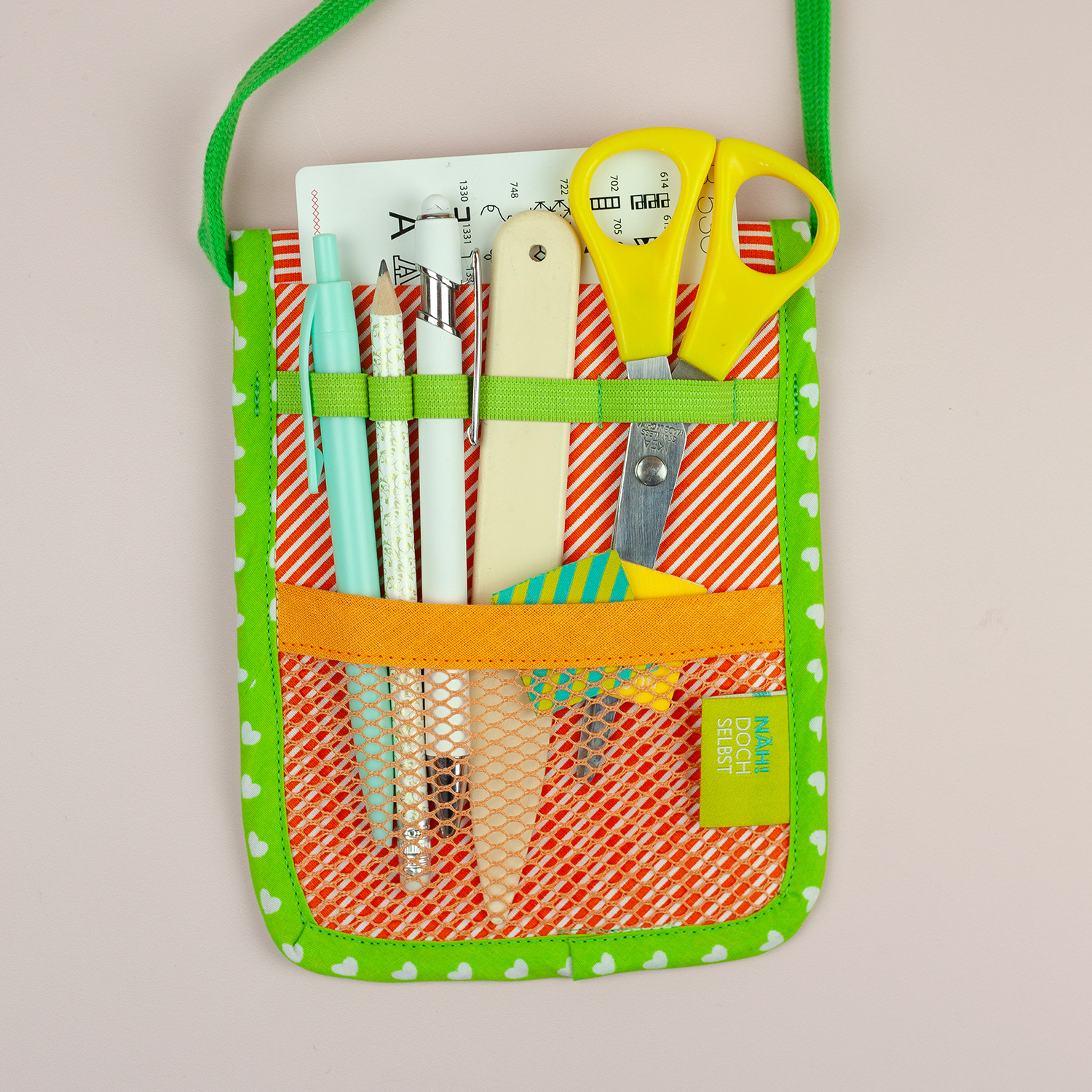 Das Schnittmuster „Taschenorganizer KittelKram“ ist deine gut sortierte Tasche in der Tasche zum Selbernähen. Er ist ein praktischer Begleiter für alle, die im Hobby- oder Berufsalltag die Hände frei haben möchten und trotzdem viele kleine Dinge griffbereit brauchen.